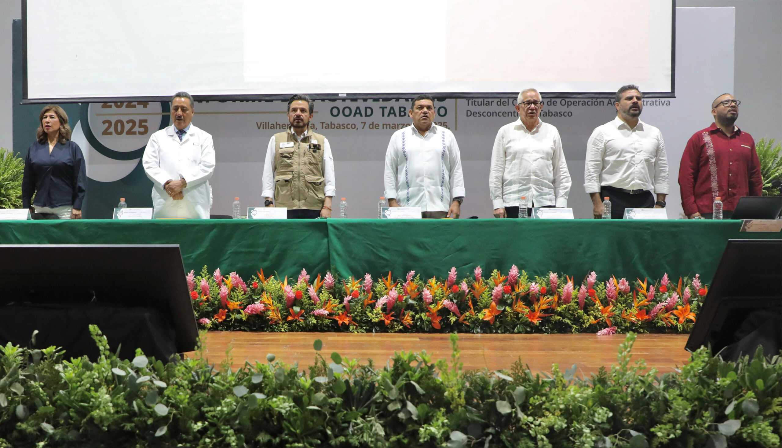 Junto al gobernador de Tabasco, Javier May Rodríguez, encabezaron la entrega del Informe de Actividades del titular del Órgano de Operación Administrativa Desconcentrada (TOOAD) en Tabasco, doctor José David Orgaz Fernández, en la Universidad Juárez Autónoma de Tabasco.