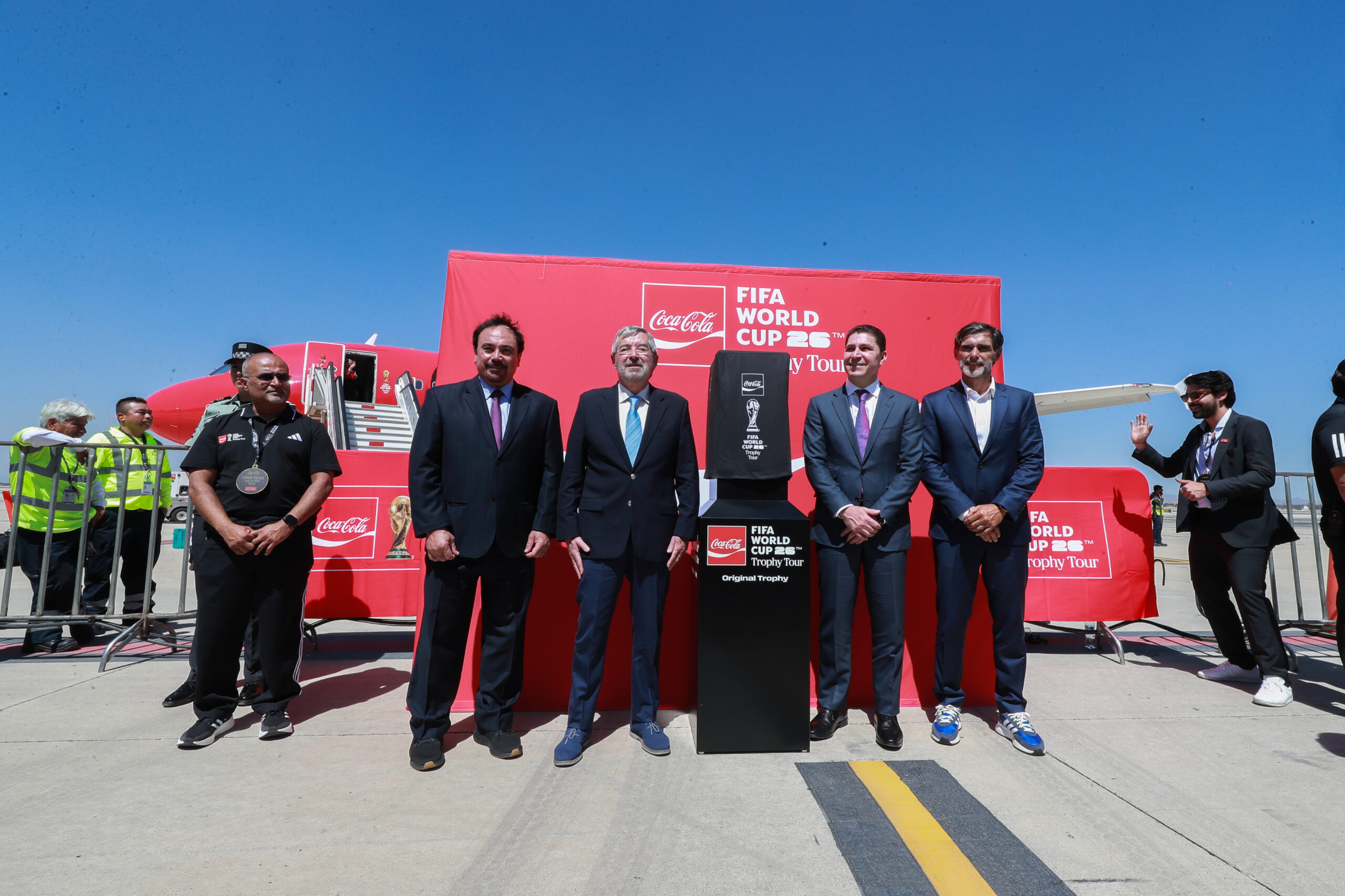 CIUDAD DE MÉXICO, México, 27 de febrero de 2026.— El Tour del Trofeo de la Copa Mundial de la FIFA, presentado por Coca-Cola, inició oficialmente su recorrido en México con la llegada del trofeo original al Aeropuerto Internacional Felipe Ángeles, marcando el arranque simbólico del camino rumbo al Mundial de 2026, en el que el país será anfitrión por tercera ocasión en su historia.