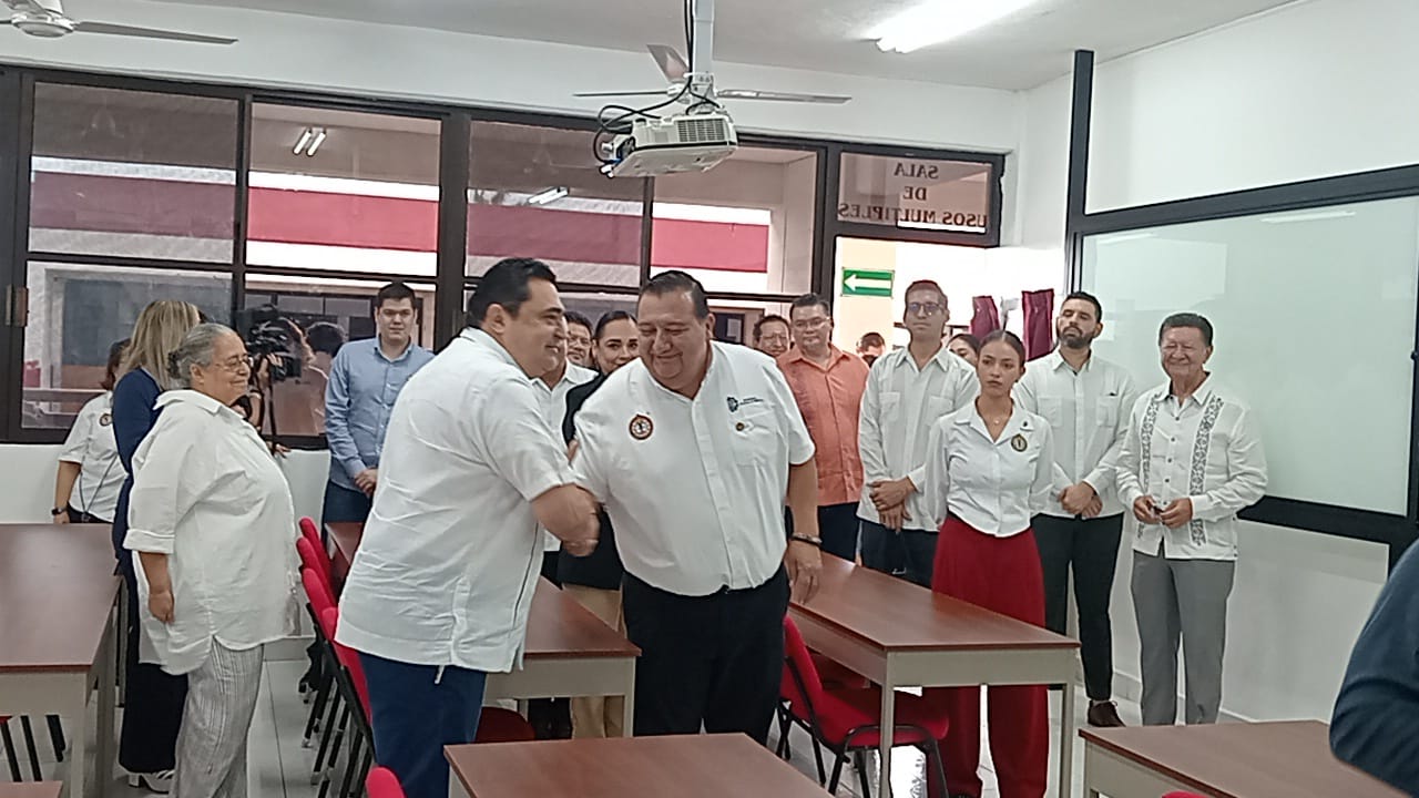 Durante su intervención, el propio Lic. Mendicuti anunció que dicho espacio llevará el nombre de la profesora Julieta Elvira Pérez Canto, a quien reconoció como una inspiración en su camino como emprendedor. La placa conmemorativa fue develada minutos después por autoridades e invitados, acompañados por la homenajeada.