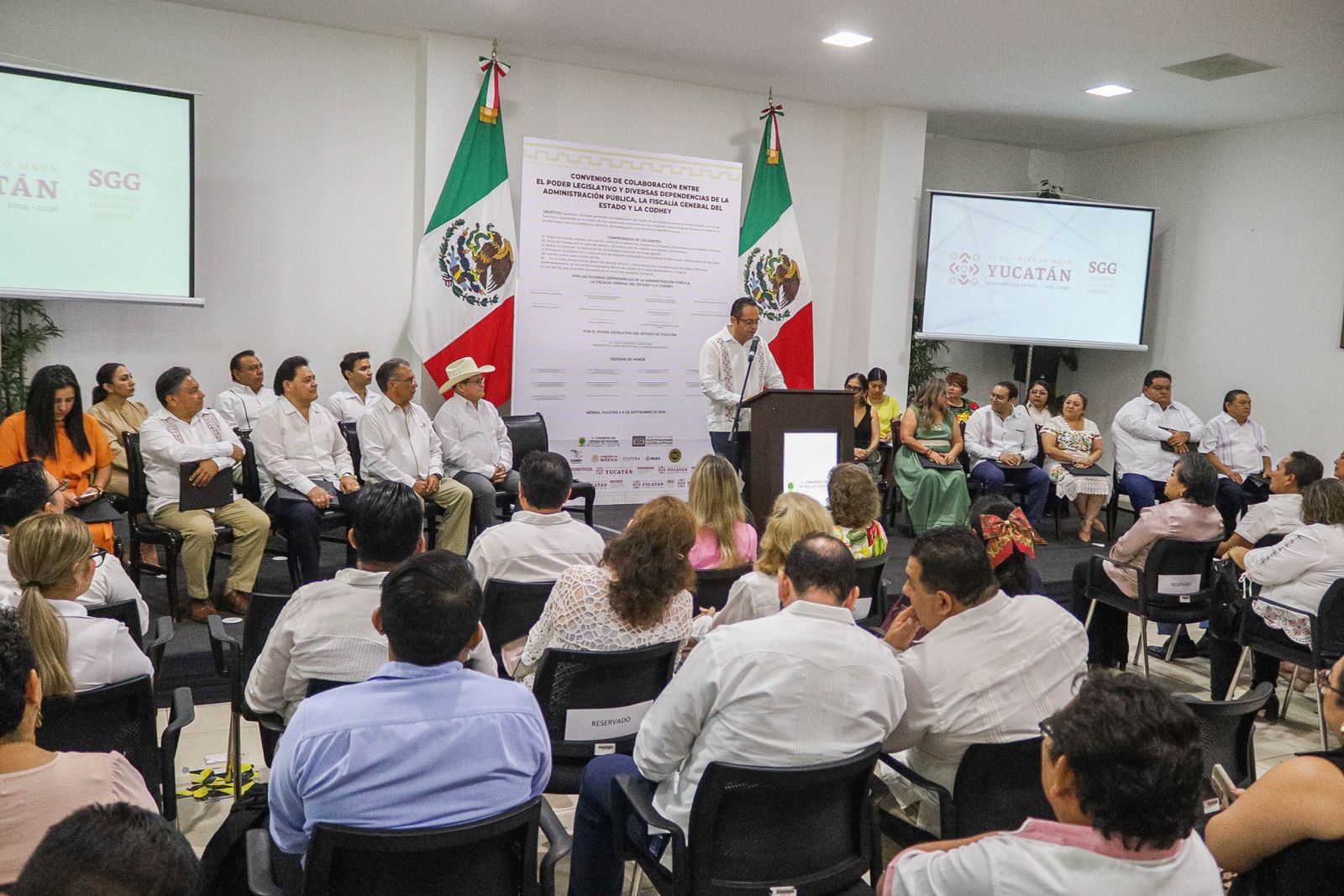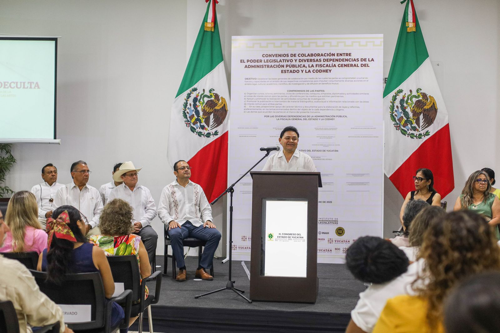 Mérida, Yucatán, 9 de septiembre de 2025.– Con el propósito de acercar la justicia a la ciudadanía y consolidar el respeto a los derechos humanos en la agenda pública, la Fiscalía General del Estado (FGE), el Congreso del Estado y la Comisión de Derechos Humanos de Yucatán (Codhey) firmaron un convenio de colaboración que impulsará actividades académicas, culturales y de investigación.
