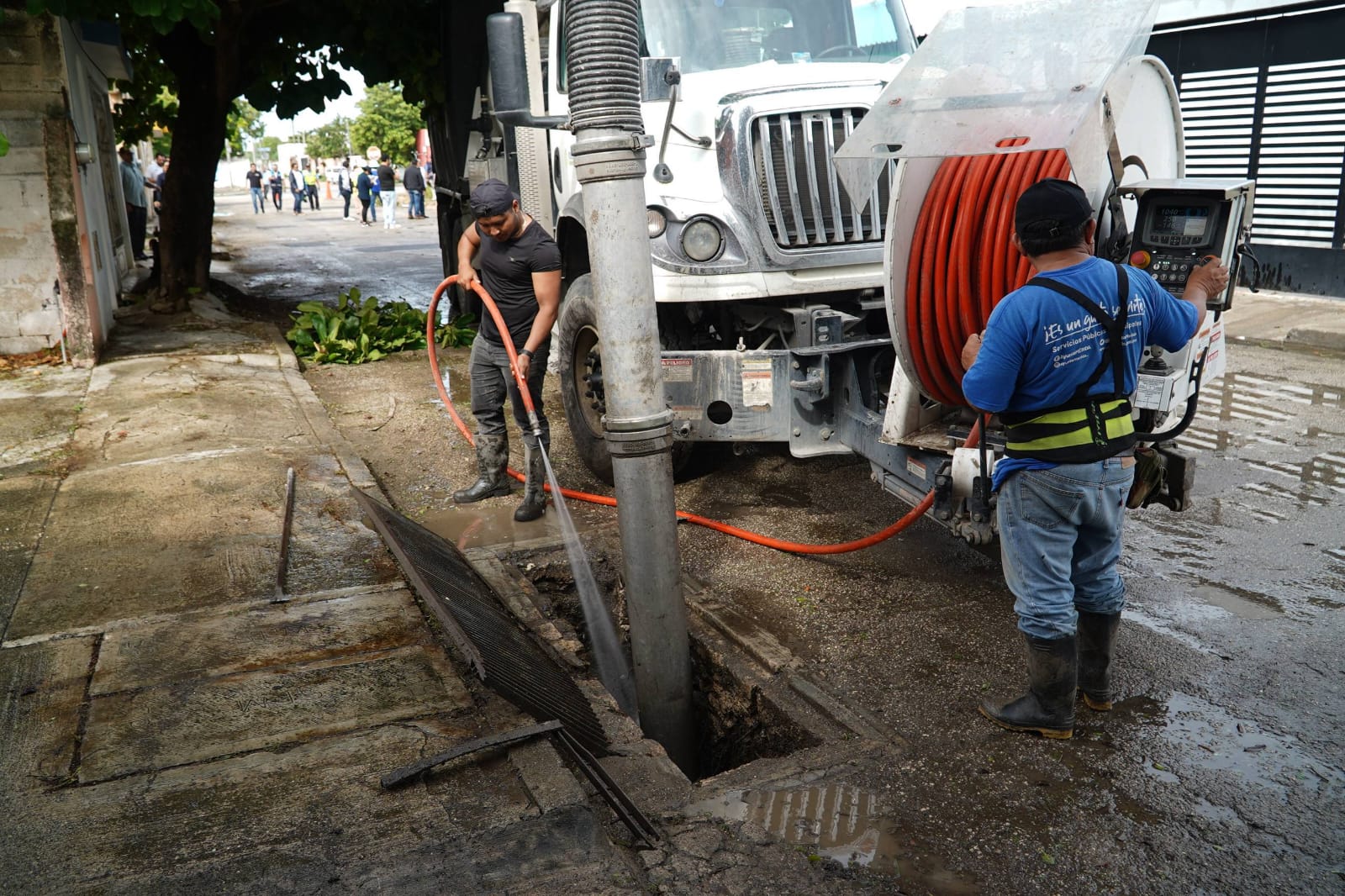 Acompañada por cuadrillas municipales, a quienes agradeció su compromiso y labor, Patrón Laviada supervisó acciones de bacheo, desazolve, limpieza de pozos, rejillas y guarniciones, así como retiro de escombros con maquinaria, beneficiando a nueve manzanas, 34 negocios y 817 vecinos.