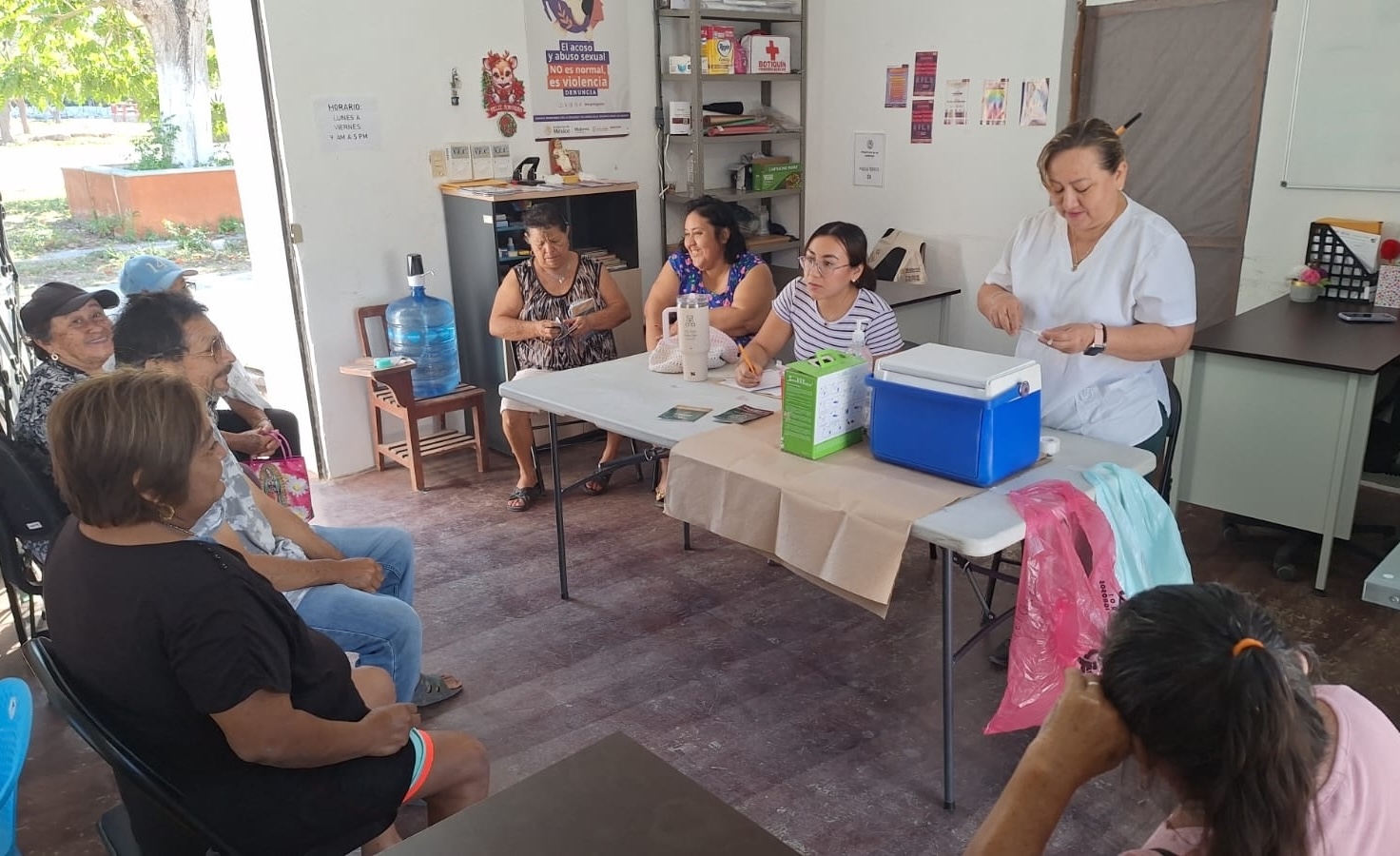 Previo al acto protocolario, ambas instituciones realizaron la primera jornada en el Centro Libre Mérida 1, ubicado en la colonia Reforma, donde personal médico brindó atención preventiva y monitoreo a trabajadoras y usuarias del espacio.
