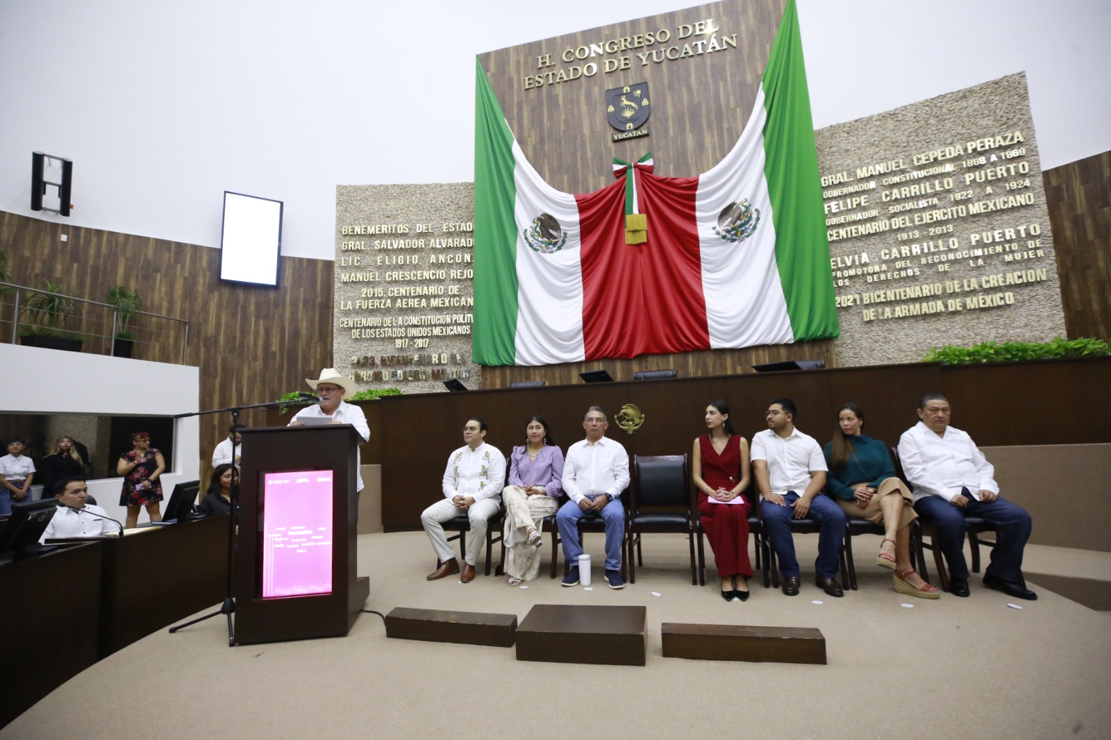 En el presídium participaron también la diputada Sayda Melina Rodríguez Gómez, secretaria de la Mesa Directiva; el abogado Alan Renato Padrón Albornoz, titular de la Secretaría de las Juventudes; el Mtro. Erik Alejandro Ojeda Novelo, director del Instituto de Investigaciones Legislativas; y el Mtro. Martín Enrique Chuc Pereira, secretario general del Congreso del Estado.