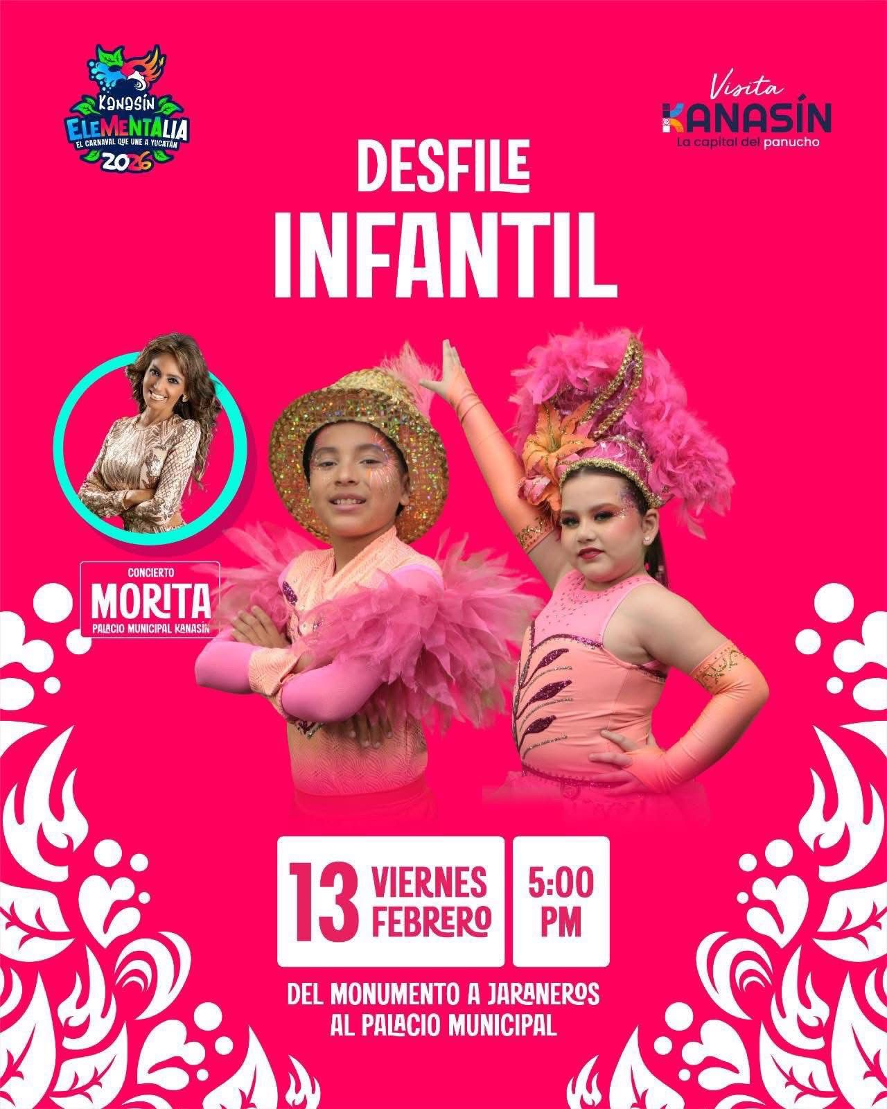 El viernes 13 se realizará el desfile infantil a las 17:00 horas, partiendo del Monumento a los Jaraneros hacia el Palacio Municipal. Más tarde se ofrecerá un concierto con Morita.