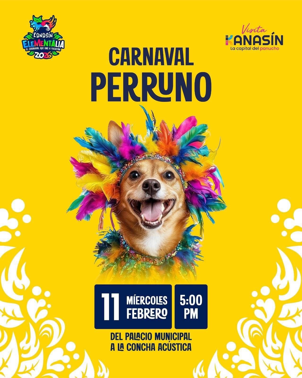 El miércoles 11 se realizará el Carnaval Perruno, que saldrá a las 17:00 horas desde el Palacio Municipal rumbo a la Concha Acústica, donde se llevará a cabo la coronación de los soberanos caninos.
