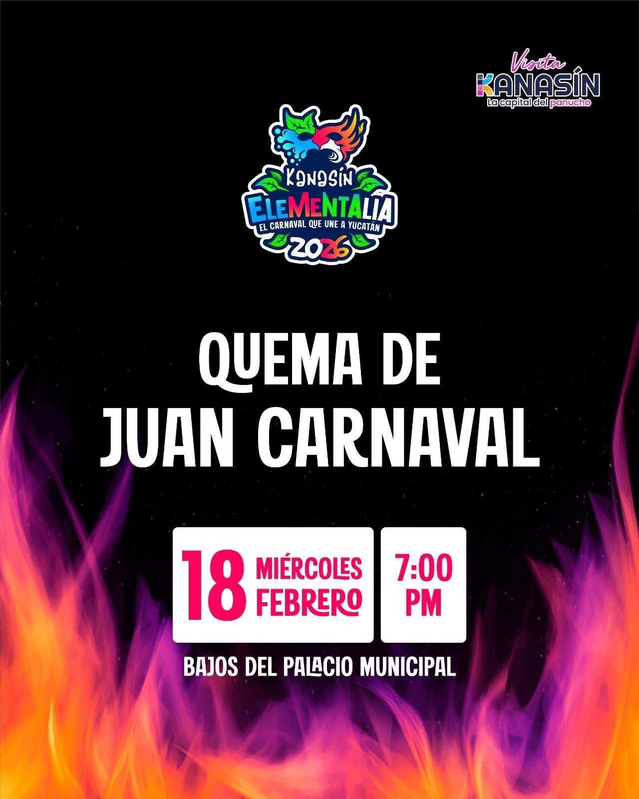 El carnaval concluirá el miércoles 18 de febrero con la Quema de Juan Carnaval a las 19:00 horas en los bajos del Palacio Municipal.