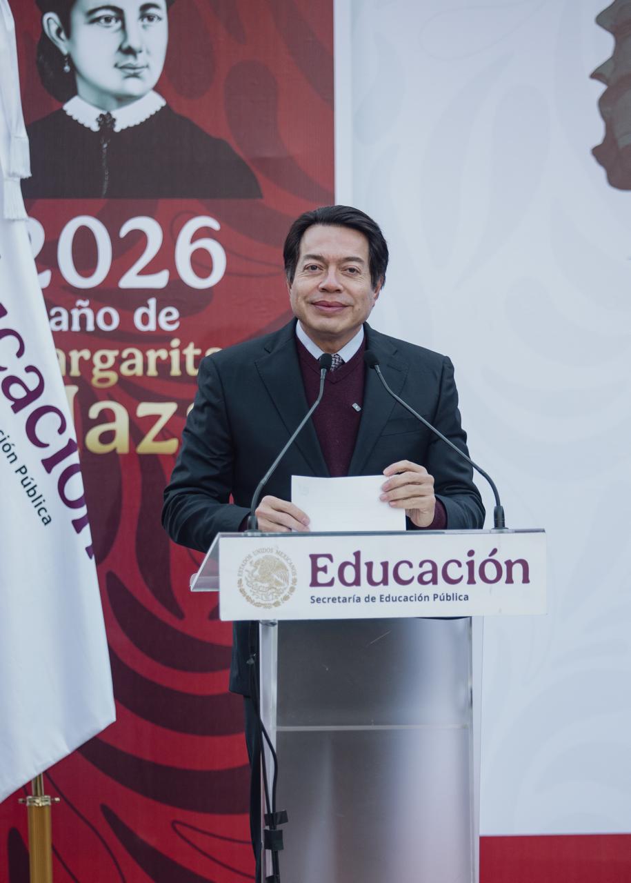 Ciudad de México, 24 de febrero de 2026.– Durante la ceremonia conmemorativa del Día de la Bandera realizada en la Escuela Secundaria Técnica No. 4 “Celia Balcárcel”, el titular de la Secretaría de Educación Pública, Mario Delgado Carrillo, afirmó que la Nueva Escuela Mexicana ha devuelto la educación al pueblo y al magisterio mediante un enfoque liberador orientado a fortalecer la autonomía, la justicia social y el ejercicio pleno de derechos.
