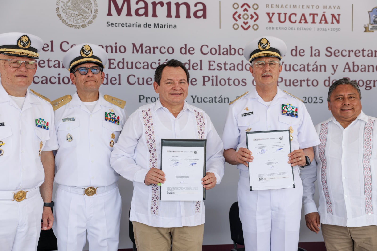 Acompañado por el Almirante Francisco Guillermo Escamilla Cázares, Oficial Mayor de la SEMAR, el Gobernador firmó como testigo de honor este convenio, destacando que Yucatán no solo es tierra fértil, sino también costa con futuro.
