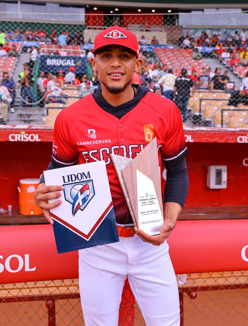 Santo Domingo.— La Liga de Béisbol Profesional de la República Dominicana (LIDOM) entregó este sábado el trofeo que acredita como Caballero Del Año al jugador Erik González, integrante de los Leones Del Escogido, en un acto realizado previo al inicio del encuentro frente a las Águilas Cibaeñas, en el estadio Quisqueya Juan Marichal.