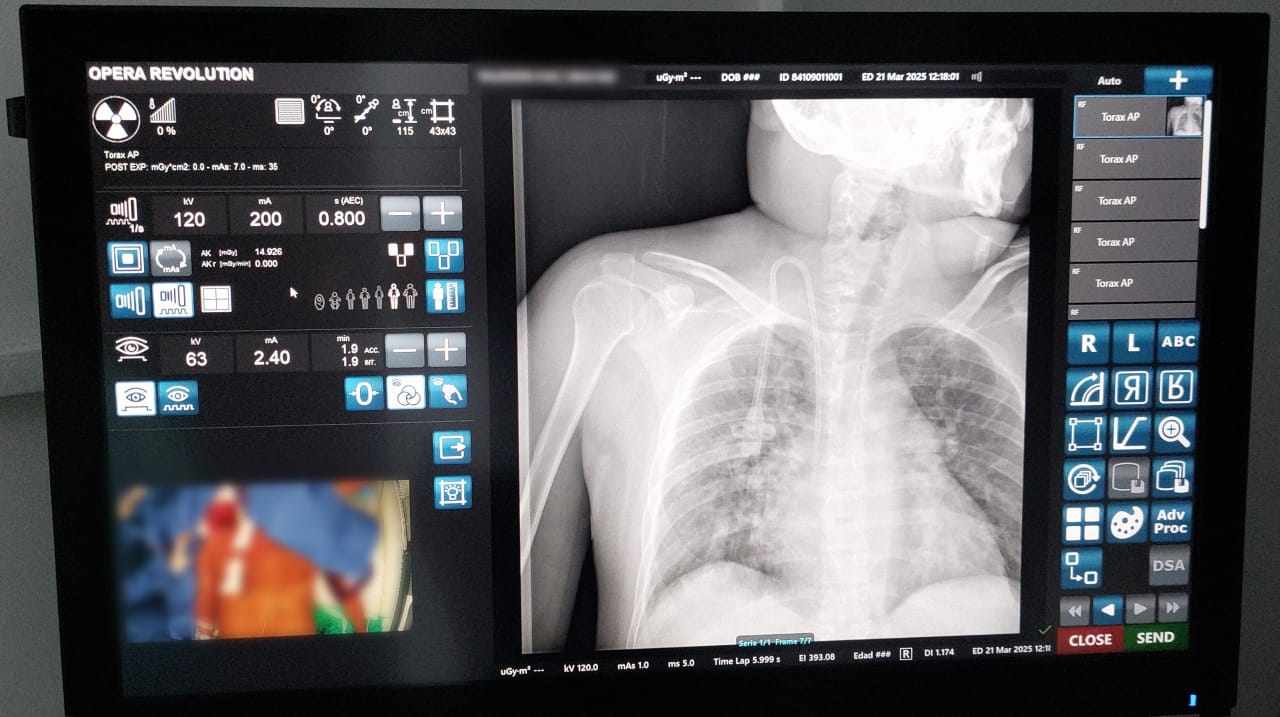 Tal es el caso de Iesus V, primer derechohabiente intervenido con el fluoroscopio a quien le colocaron un “Catéter Permacath”, el cual es utilizado para el tratamiento de hemodiálisis. A través de esta tecnología, la doctora Elena Solís Montero, del servicio de Angiología del HGR No. 12, colocó quirúrgicamente dicho catéter en el pecho del paciente.