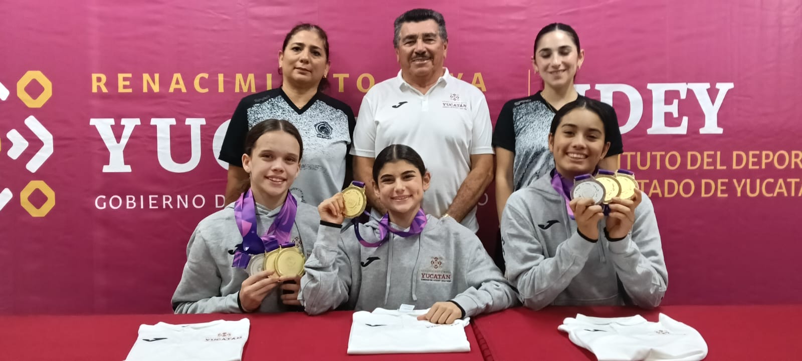 Mérida, Yucatán.– Las medallistas yucatecas de gimnasia rítmica arribaron a su tierra natal después de su exitosa participación en los Juegos Panamericanos Juveniles, celebrados en Asunción, Paraguay, donde consiguieron preseas tanto en la modalidad individual como por equipos.