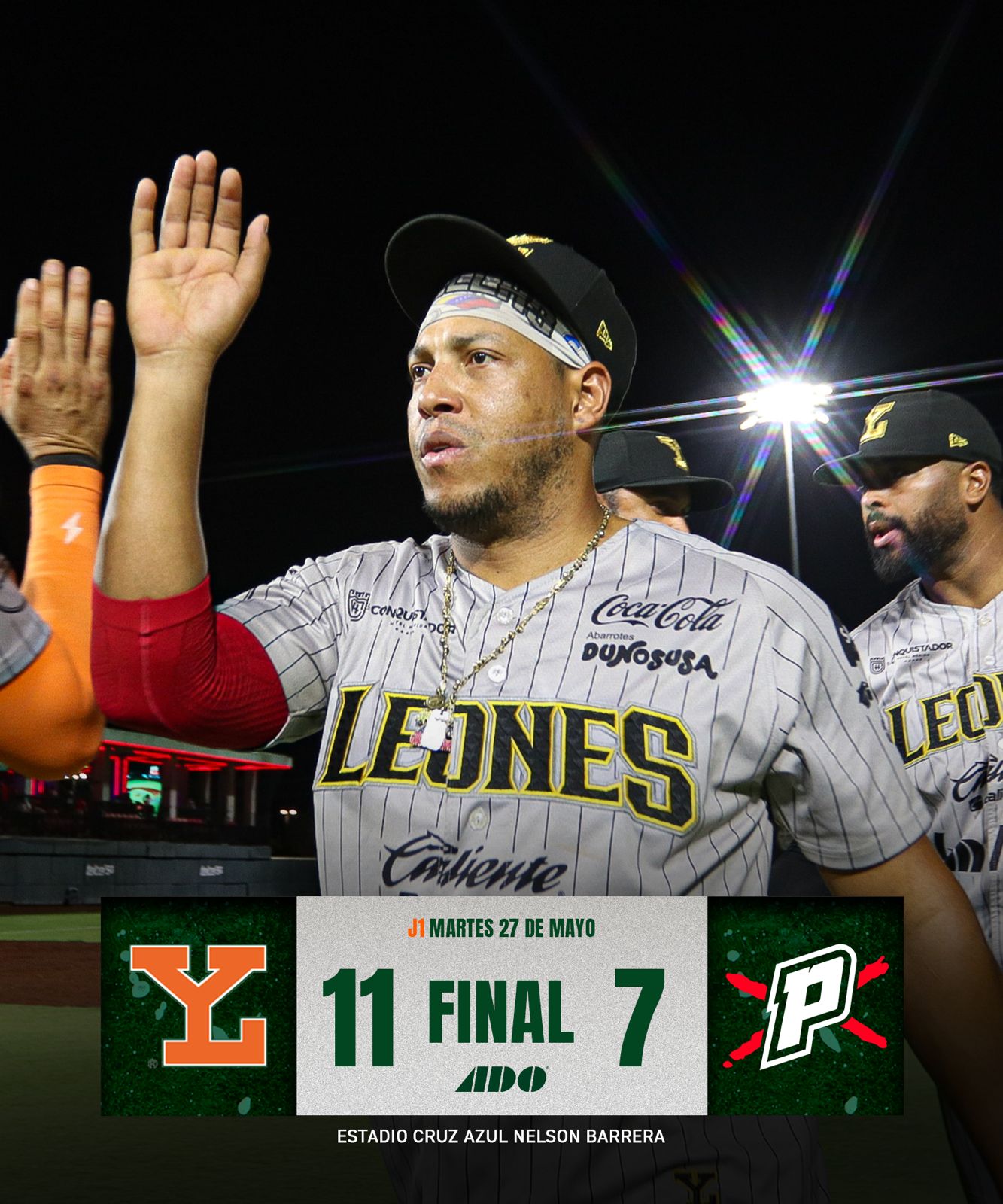 Campeche, 27 de mayo de 2025.– Los Leones de Yucatán comenzaron con fuerza la serie ante los Piratas de Campeche, imponiéndose 11-7 en el estadio Nelson Barrera Romellón gracias a un Grand Slam decisivo de Yangervis Solarte en la novena entrada.