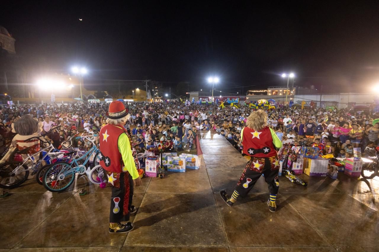 El evento estuvo lleno de alegría y sorpresas para las niñas y niños del municipio, quienes recibieron obsequios y participaron en una gran rifa con más de 300 premios, entre ellos bicicletas, tabletas y juguetes. La celebración se prolongó hasta la madrugada, con presentaciones estelares de personajes infantiles como Plim Plim, Bely y Beto, Toy Story, y los payasitos Relojito y Relojín.