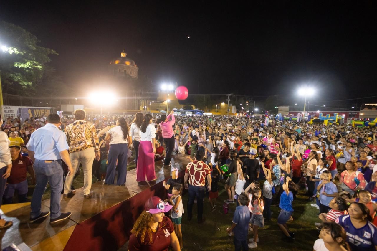 Umán, Yucatán. – Una multitud de más de 5 mil personas se congregó en el Campo Solidaridad para celebrar el Día del Niño y la Niña, en un colorido festival organizado por el DIF Municipal y la Dirección de Educación y Cultura del Ayuntamiento de Umán.