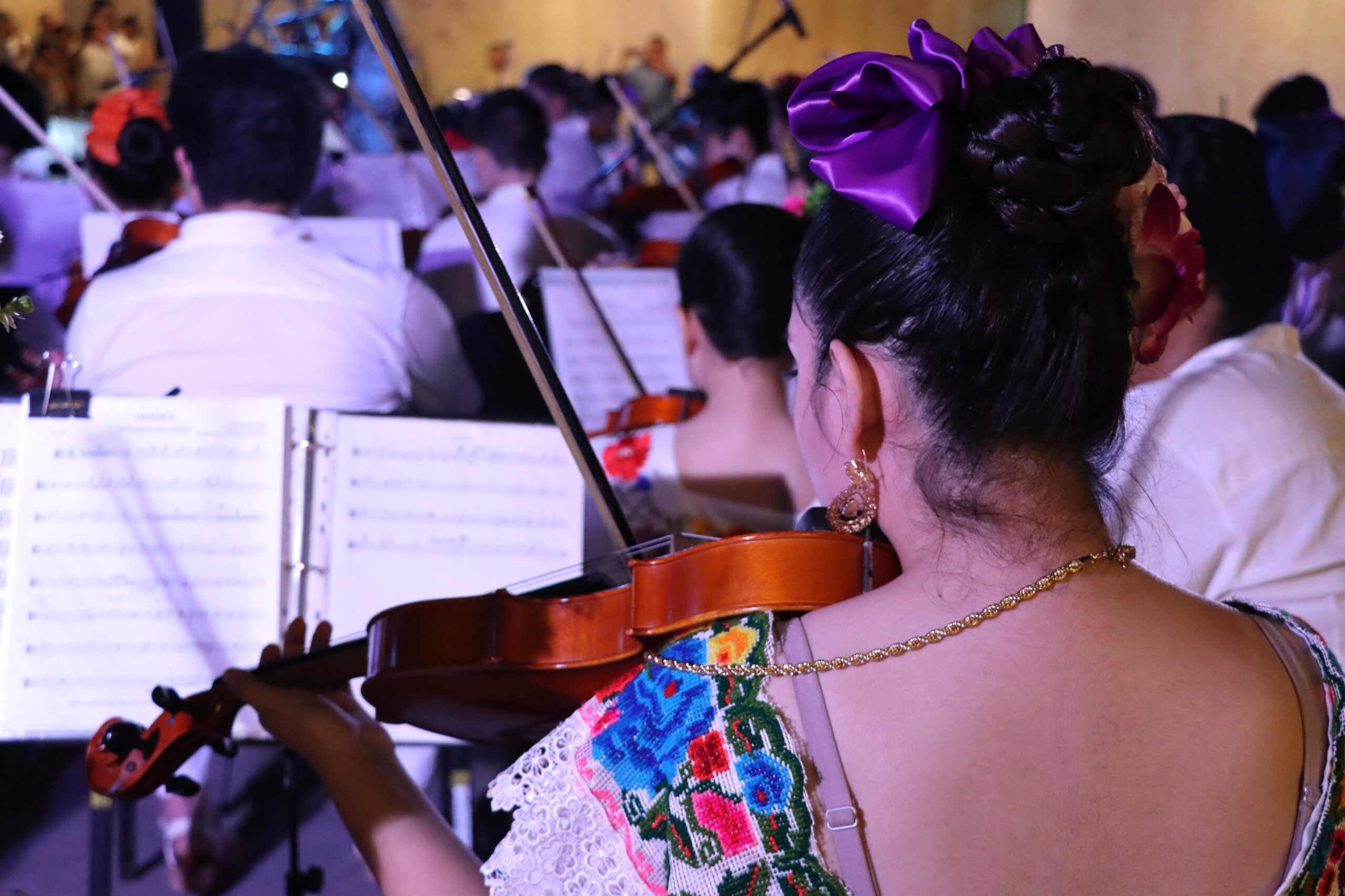 En este concierto inaugural, titulado Entre Cuerdas y Tradición, brillaron las Hermanitas Pech Bolio y la Orquesta Comunitaria de Cuerdas del Renacer, perteneciente al Programa Semilleros Creativos. Niñas, niños y jóvenes de distintos municipios compartieron escenario en una velada dedicada a exaltar el patrimonio sonoro de Yucatán.