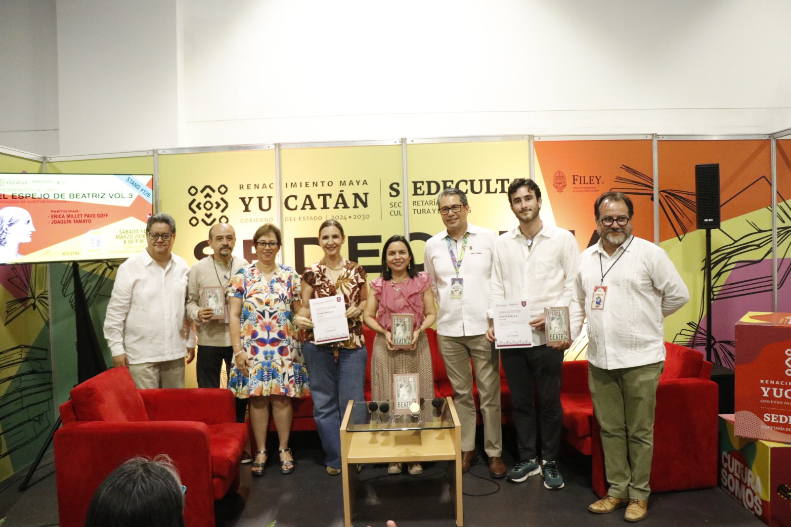 En el ámbito editorial también se dio a conocer “El espejo de Beatriz, volumen 3”, una antología que reúne cuentos ganadores y menciones honoríficas del Premio Nacional de Cuento Beatriz Espejo entre 2021 y 2025, en una coedición entre la Secretaría de la Cultura y las Artes y el Ayuntamiento de Mérida. Participaron en la presentación Erica Millet, ganadora del certamen en 2021, y Pavo Goff, mención honorífica, con la moderación de Joaquín Tamayo.
