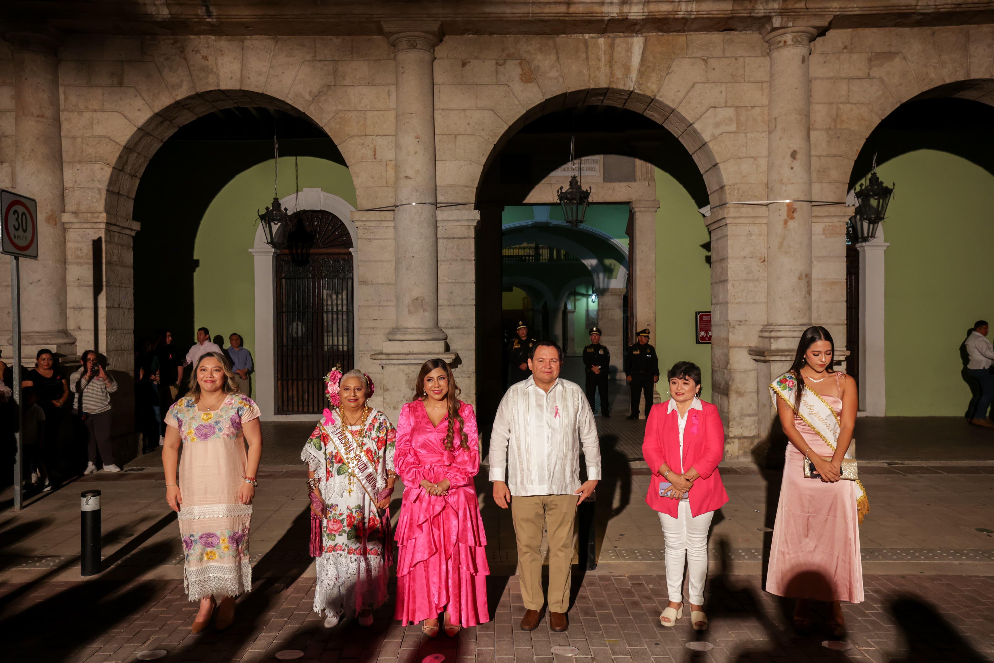 Con la proyección del video mapping “Una tradición entre todas”, comenzó la Agenda Rosa para fomentar la detección temprana de esta enfermedad en Yucatán.