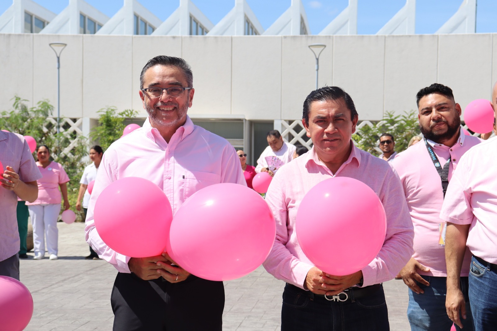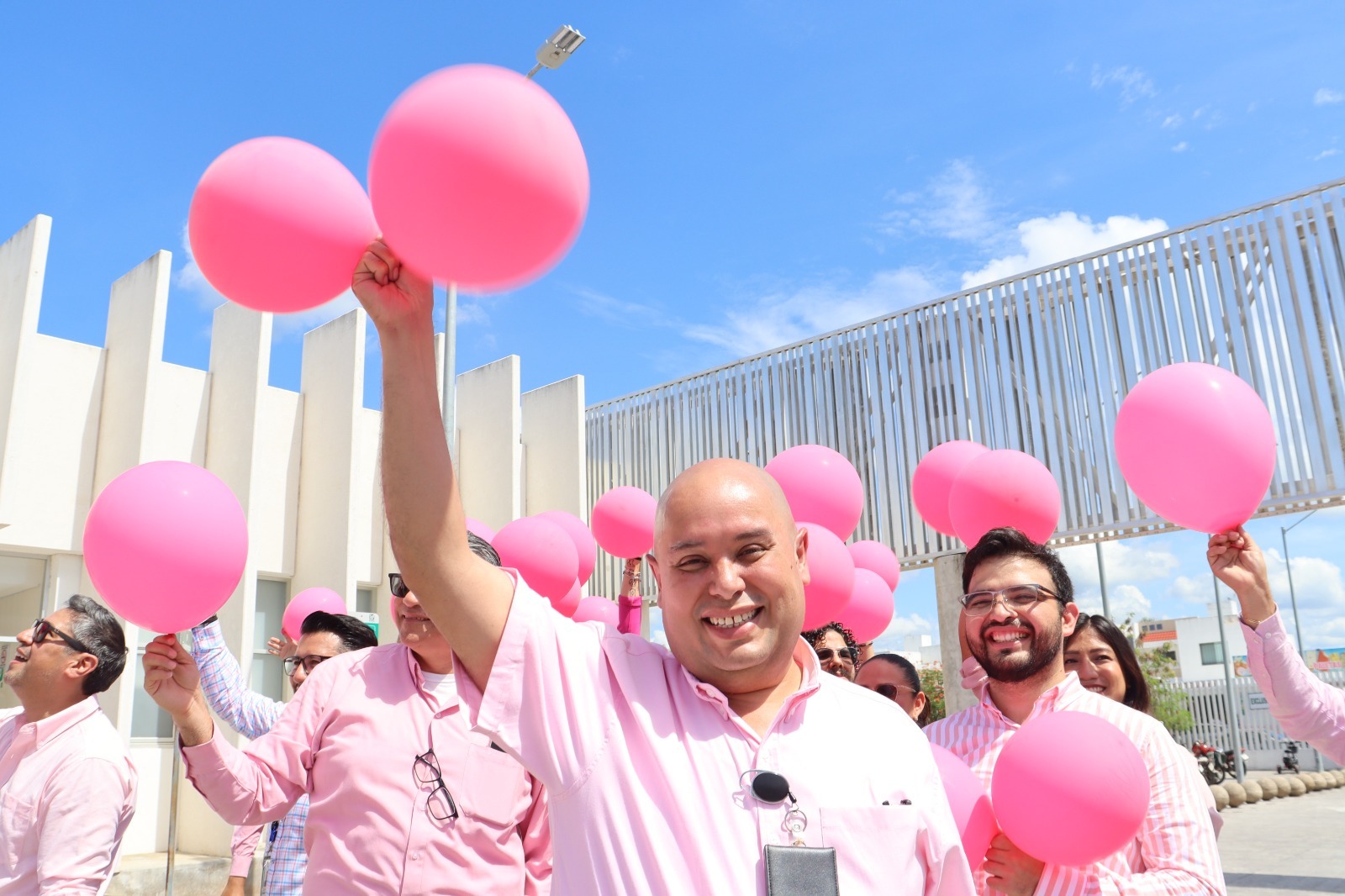 El delegado del IMSS en Yucatán, doctor Alonso Juan Sansores Río, agradeció a todo el personal por su participación en esta activación, que tiene la finalidad de concientizar sobre la importancia de esta fecha tan trascendental: el Seguro Social siempre trabaja en pro de la atención y bienestar de las mujeres, así como en la detección oportuna del cáncer de mama, y para eso contamos con todos los Módulos PrevenIMSS, distribuidos en las UMF, hospitales, así como con la Unidad de Detección y Diagnóstico de Cáncer de mama.