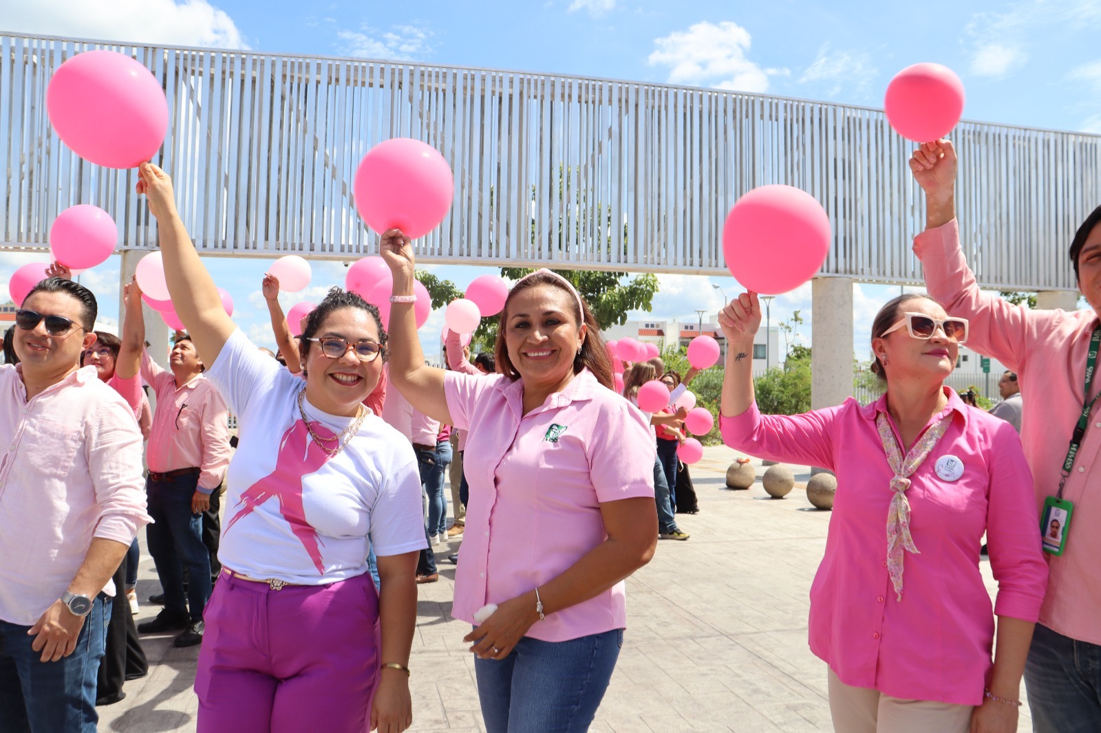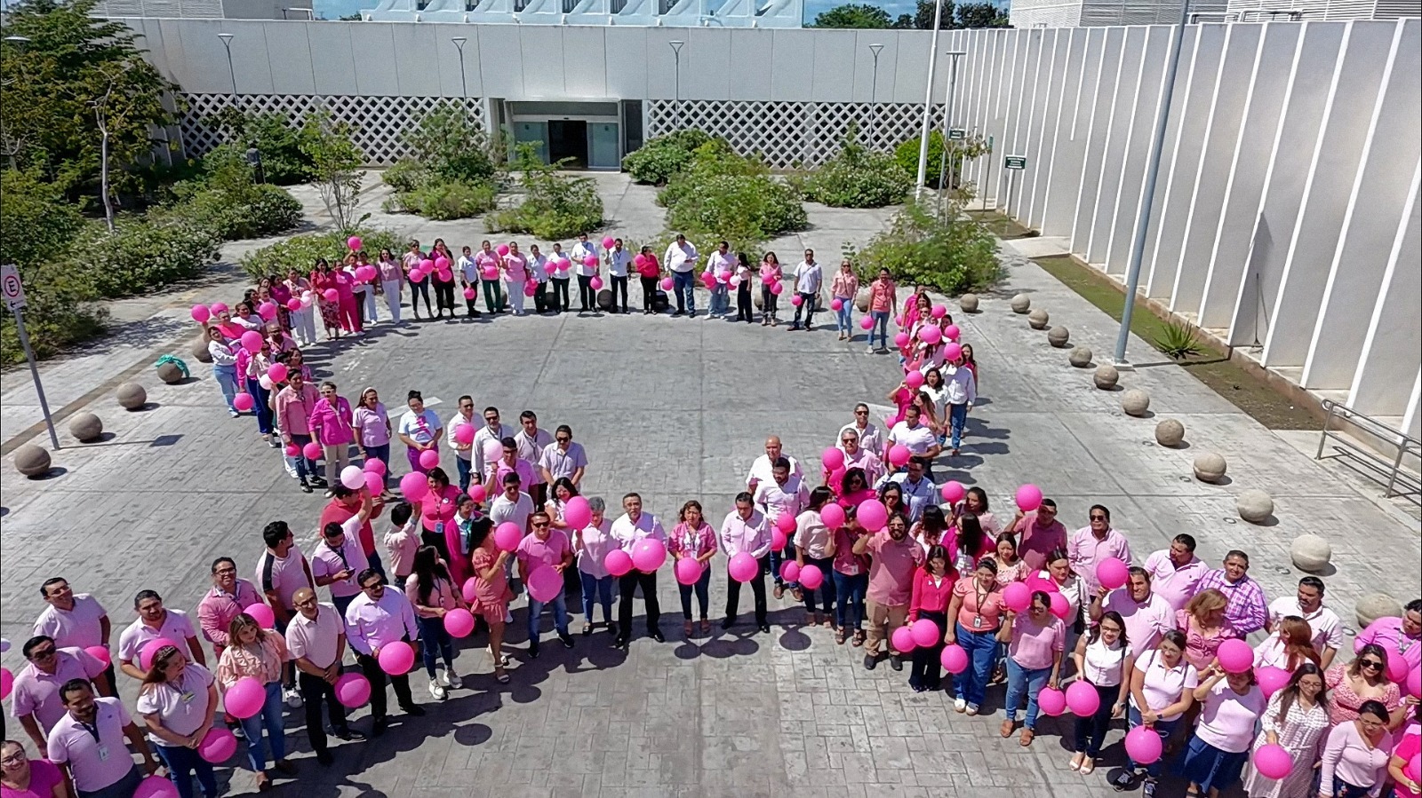 En el Día Mundial de Lucha contra el Cáncer de Mama, que se conmemora este 19 de octubre, personal del Instituto Mexicano del Seguro Social (IMSS) en Yucatán formó un ‘lazo humano rosa’ en la explana de la Unidad de Medicina Familiar (UMF) No. 61 “Los Héroes de la Salud”, con el objetivo de sensibilizar sobre este padecimiento, así como refrendar su compromiso para fortalecer la atención a las mujeres en la entidad.