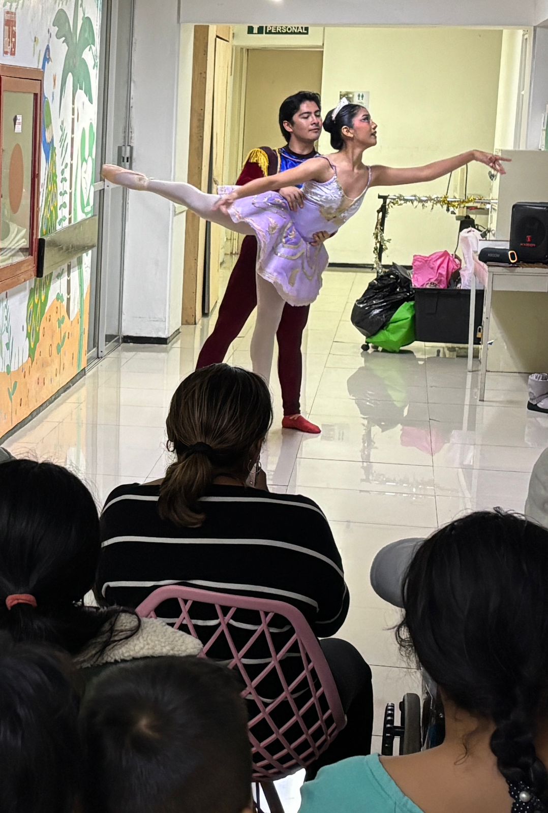 La muestra estuvo a cargo de los bailarines Ozmar Hernández Martínez y Carolina Suárez Alcántara, quienes, bajo la dirección de la profesora Cicely Vallejos Ruiz, interpretaron fragmentos del reconocido ballet clásico. Las y los niños respondieron con aplausos y entusiasmo, mientras que los familiares agradecieron el gesto que contribuyó a aliviar la estancia hospitalaria.
