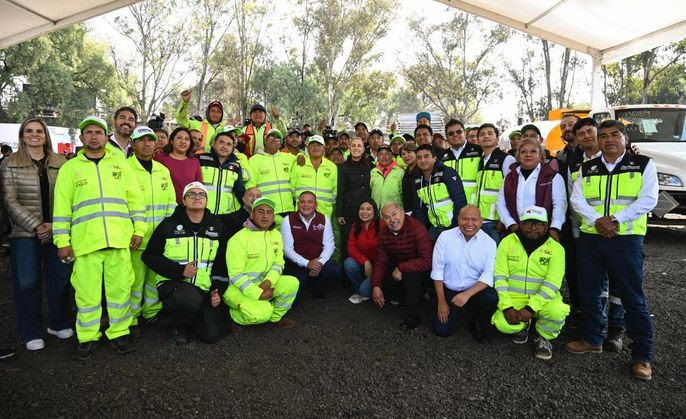 Texcoco, Estado de México, a 19 de diciembre de 2025.- La Presidenta Claudia Sheinbaum Pardo cumplió con la meta de entrega de trenes de pavimentación para los 10 municipios contemplados en el Plan Integral del Oriente del Estado de México, al dar banderazo de salida a cuatro maquinarias que permitirán hacer obras de bacheo en Chalco, Chimalhuacán, Tlalnepantla y Valle de Chalco, atendiendo así una de las necesidades más demandadas por las y los mexiquenses.