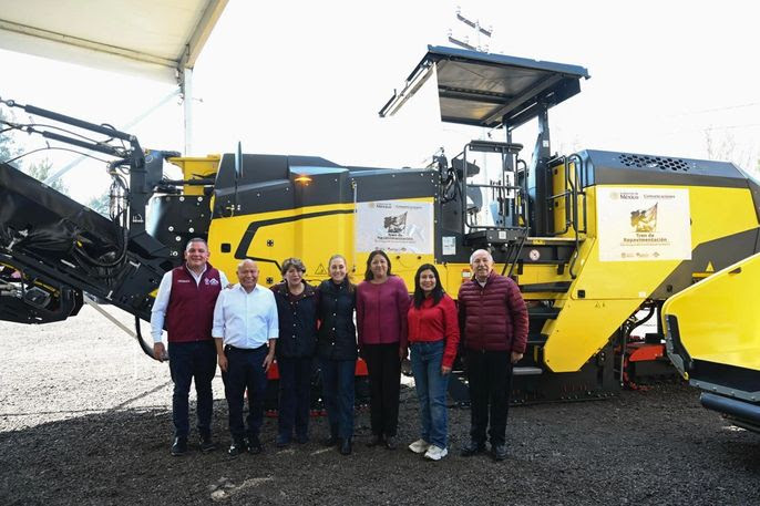 La gobernadora del Estado de México, Delfina Gómez Álvarez, agradeció la tercera entrega de estos trenes de pavimentación, con lo que se cumplió el compromiso establecido por la Presidenta de México en este primer año.