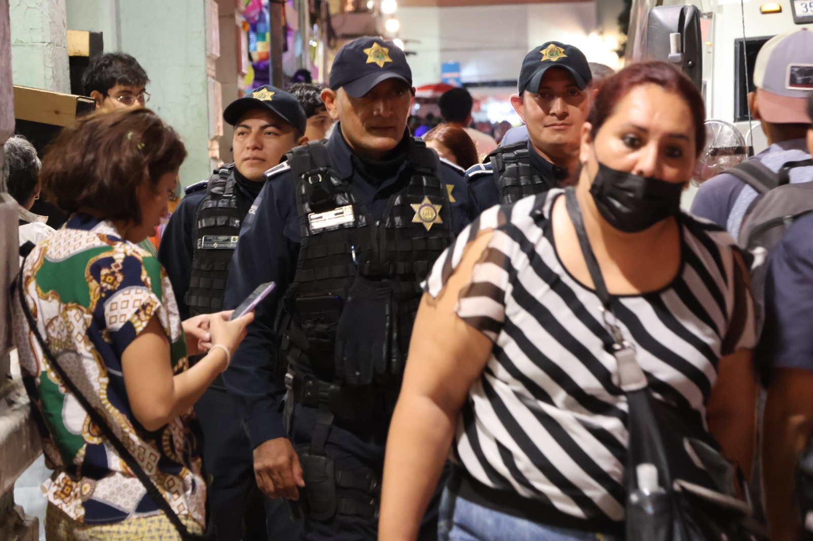 La corporación detalló que se reforzó la vigilancia en la zona comercial, centros de abasto, paraderos, bares, restaurantes y centros nocturnos del primer cuadro de la ciudad, como parte de las acciones preventivas por las celebraciones de fin de año.