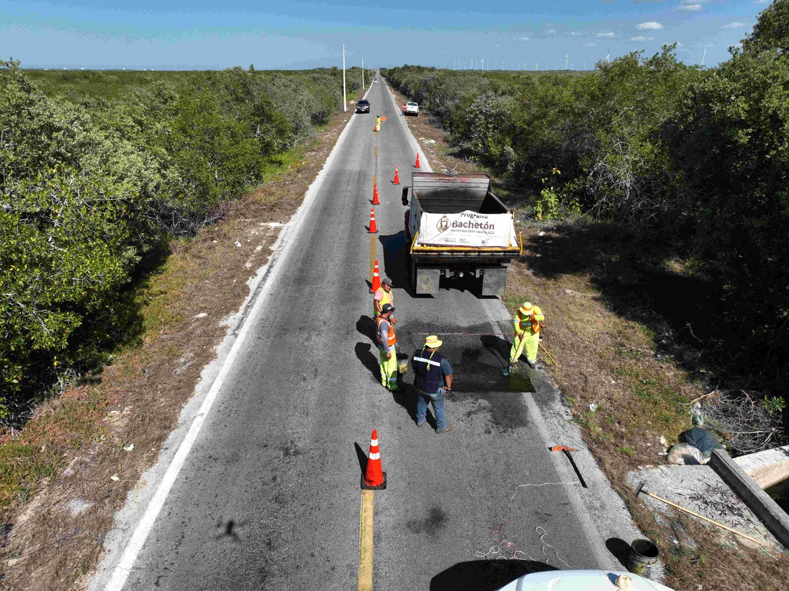 Además del bacheo, el programa contempla sellado de grietas, deshierbe y mantenimiento del balizamiento, lo que incluye pintura horizontal y señalamiento vertical para mayor seguridad de los usuarios.