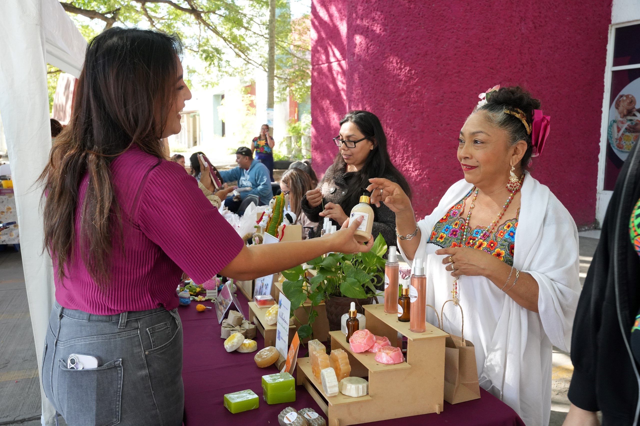 Las expositoras provenían de Umán, Ticul, Chocholá, Opichén, Kanasín y colonias del sur y sur profundo de Mérida. Ofrecieron productos como dulces regionales, comida típica, artesanías en pasta, bolsos tejidos, prendas bordadas en punto de cruz, velas artesanales y artículos de belleza elaborados con miel y plantas tradicionales.
