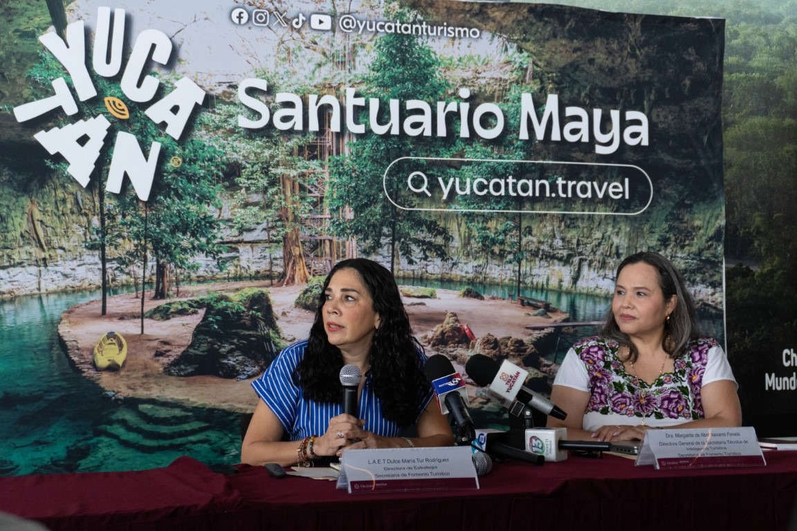 Durante una conferencia de prensa, la Directora General de la Secretaría Técnica de Inteligencia Turística, Margarita de Abril Navarro Favela, y la Directora de Estrategia de SEFOTUR, Dulce María Tur Rodríguez, destacaron la importancia de sumar esfuerzos con el sector turístico para impulsar nuevas experiencias enfocadas en el bienestar integral y visibilizar las actividades que ya se realizan en distintos puntos del estado.