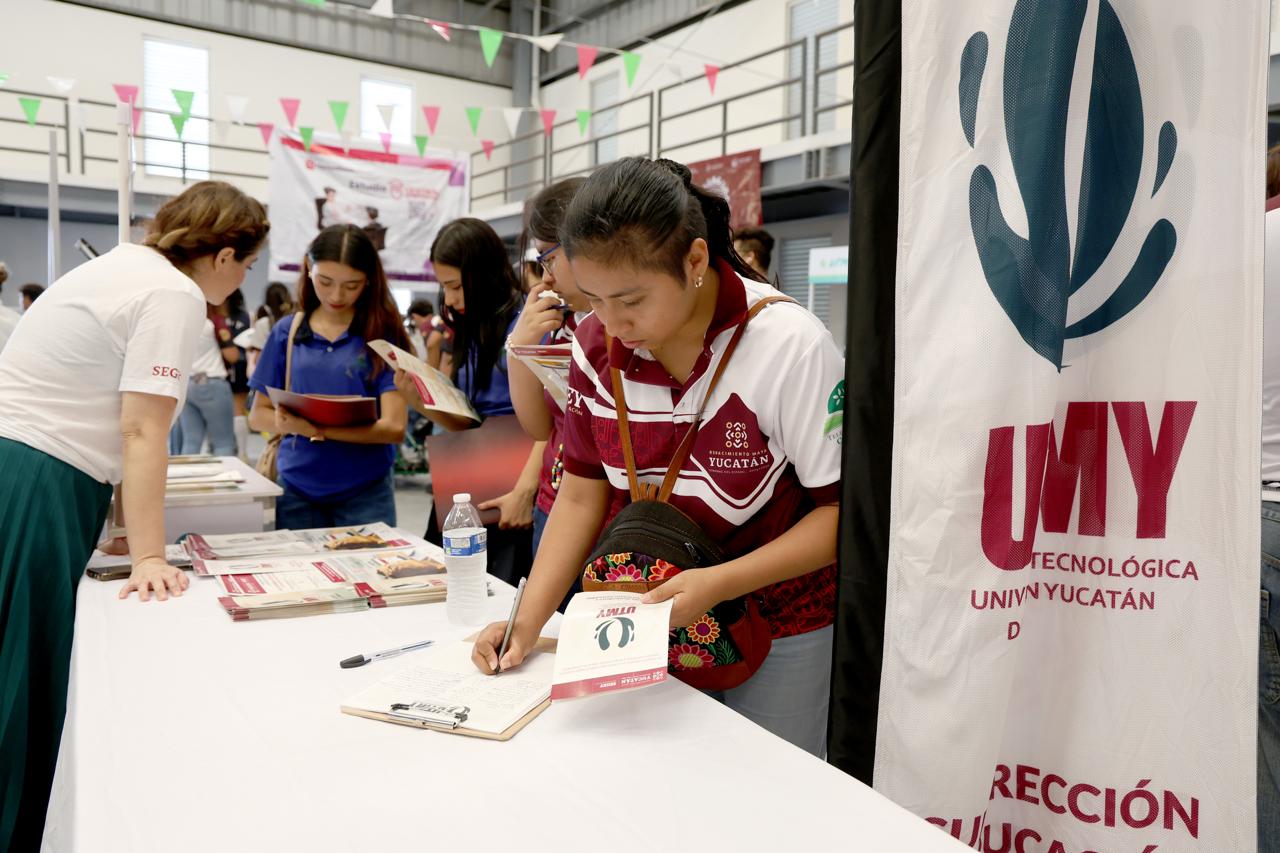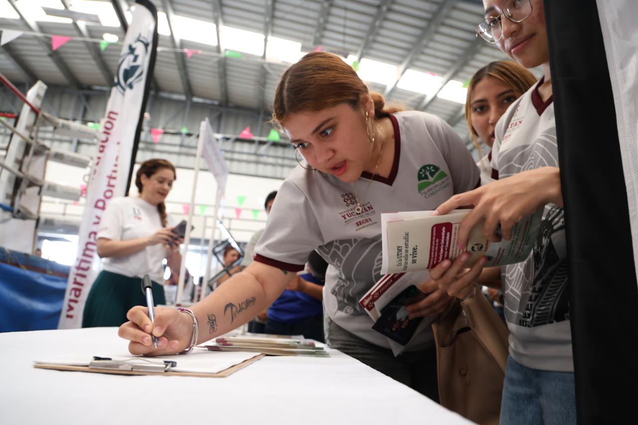 Progreso, Yucatán.– Con el objetivo de acercar opciones de formación profesional a las juventudes del litoral yucateco, la Secretaría de Educación del Gobierno del Estado de Yucatán (Segey) participó en la Feria de Universidades realizada en el puerto de Progreso, donde se presentó la oferta académica de la Universidad Tecnológica del Mar de Yucatán (UTMY).