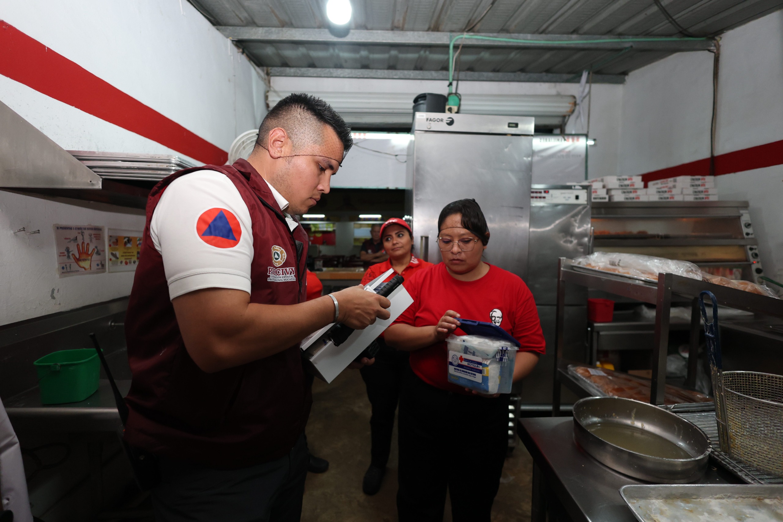Durante el recorrido, se verificó que los establecimientos contaran con extintores vigentes, salidas de emergencia señalizadas y correcta instalación eléctrica y de gas L.P., entre otras medidas esenciales de seguridad.