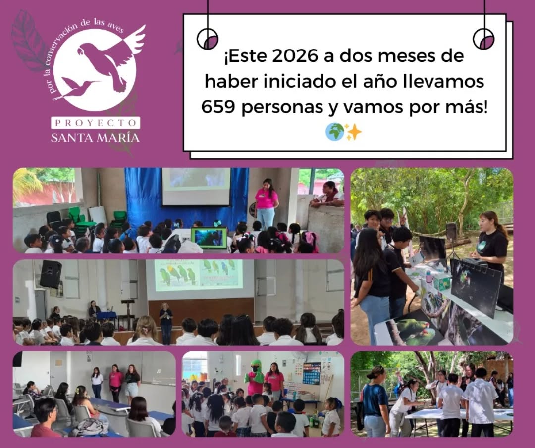 Mérida, Yucatán, 5 de marzo de 2026.— El mensaje de respeto y protección a la avifauna de Yucatán impulsado por el Centro de Difusión y Conservación Ambiental Proyecto Santa María ha llegado a casi tres mil personas, en su mayoría niñas y niños, mediante actividades realizadas directamente en escuelas y comunidades.