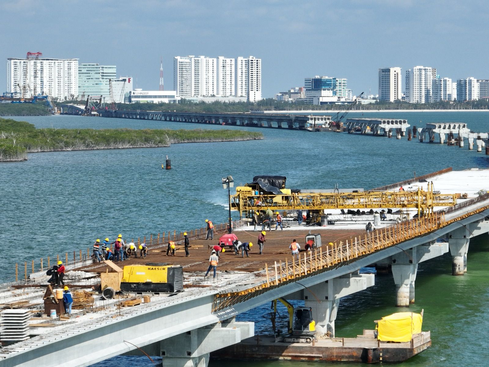 Cancún, Quintana Roo, a 22 de mayo de 2025.– El Gobierno de México, a través de la Secretaría de Infraestructura, Comunicaciones y Transportes (SICT), lleva a cabo una histórica rehabilitación ambiental como parte de la construcción del Puente Vehicular Nichupté, una moderna obra vial que conectará la zona hotelera de Cancún con importantes avenidas como el Boulevard Colosio, Tulum, Kabah y Bonampak.