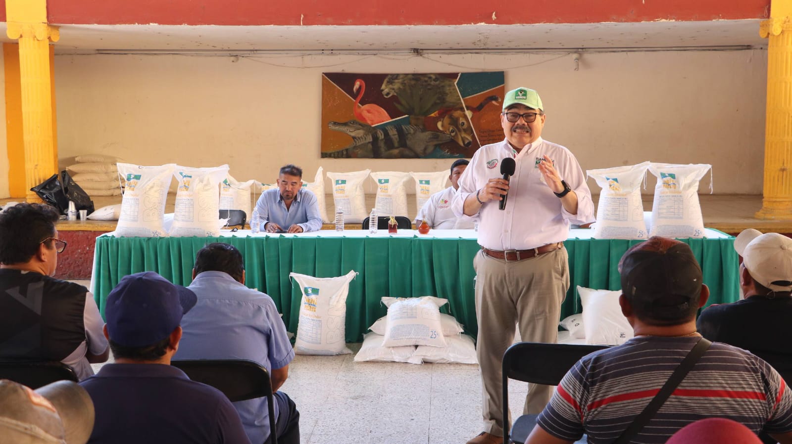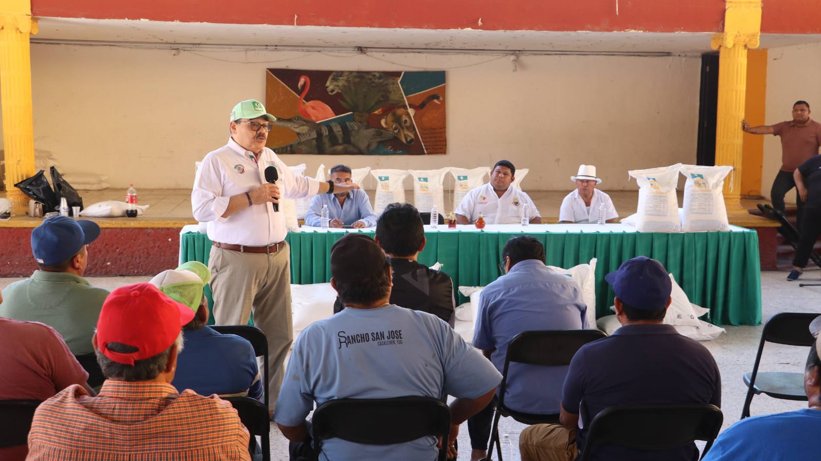 Cacalchén, Yucatán, 29 de noviembre de 2025.– El vicepresidente de la Mesa Directiva del Senado, Jorge Carlos Ramírez Marín, encabezó junto con el alcalde Manuel Orozco Aké la entrega de una tonelada de azúcar a apicultores del municipio, con el objetivo de fortalecer la alimentación de las colmenas y contribuir al equilibrio ambiental de la región.