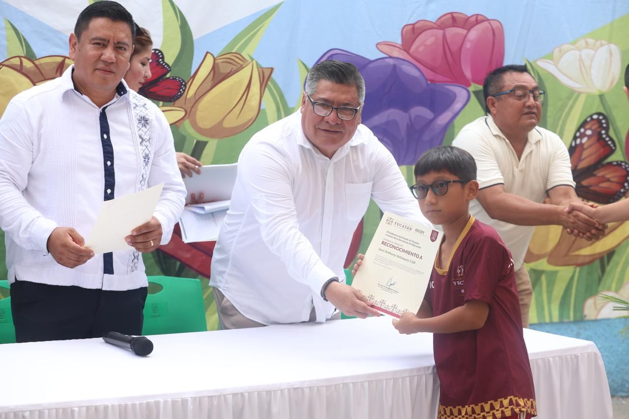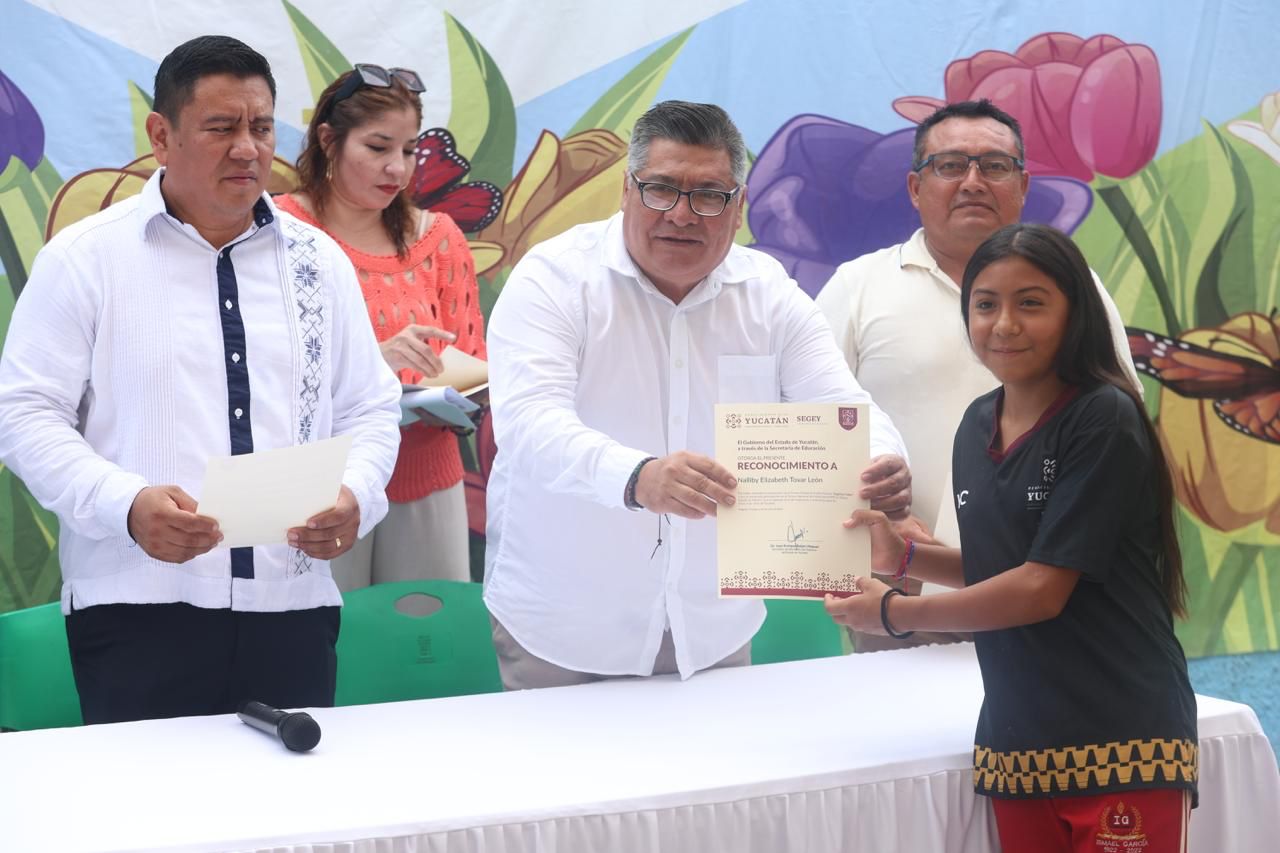 Progreso, Yucatán, 5 de julio de 2025.– Con gran entusiasmo y orgullo, 20 estudiantes de la Escuela Primaria Estatal “Ismael García” del puerto de Progreso fueron reconocidos por la Secretaría de Educación del Gobierno del Estado (Segey) por su participación en el Torneo Nacional de Futbol Escolar, organizado por la Federación Mexicana de Futbol.