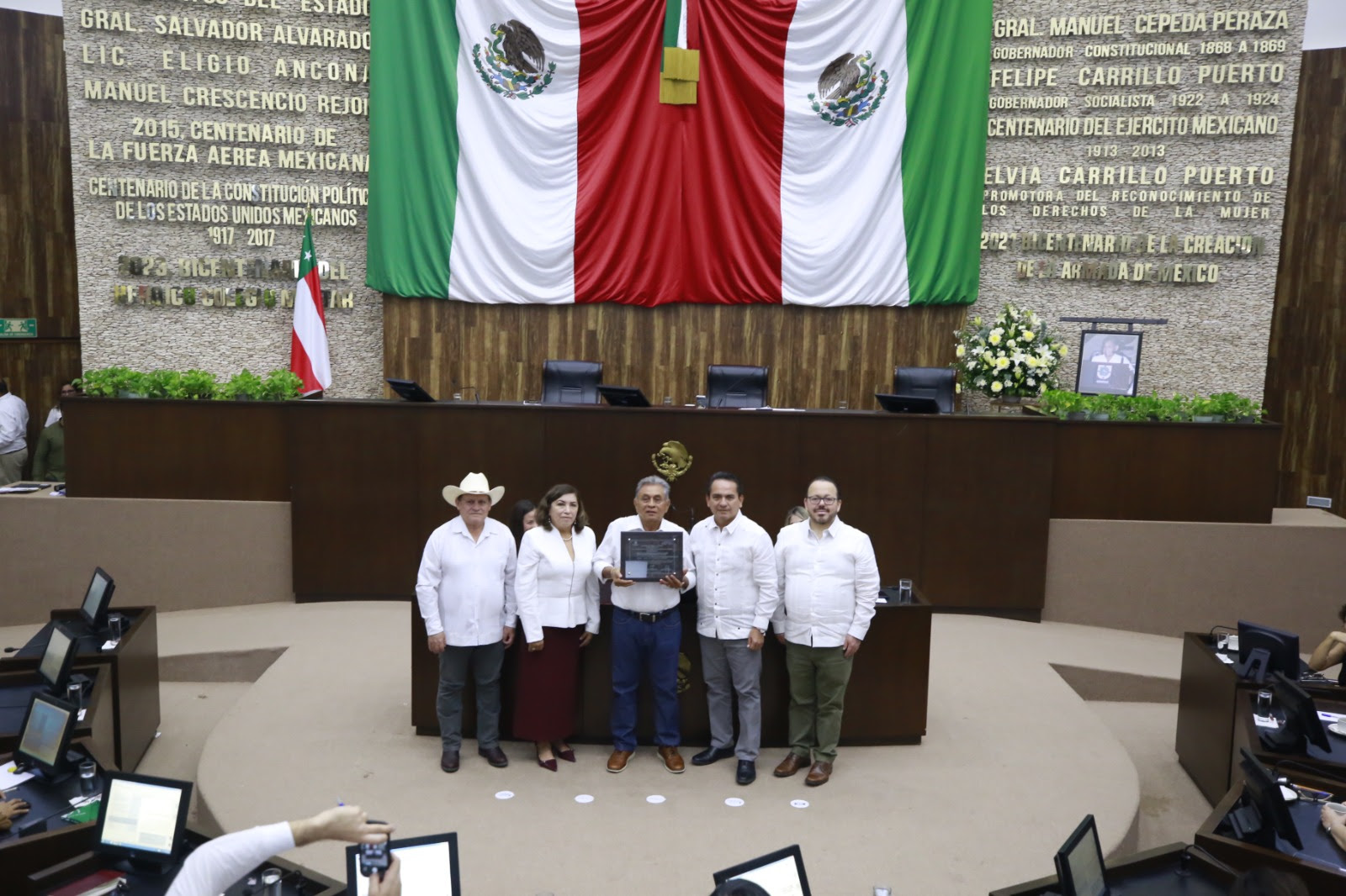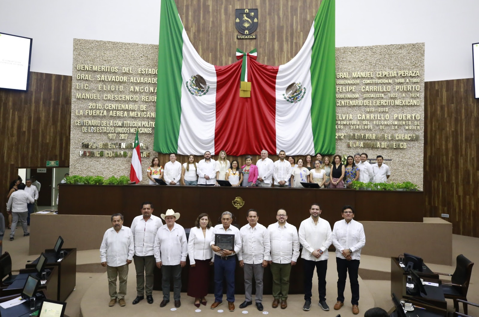 Desde tribuna, destacó que el homenaje representa un reconocimiento al impacto social de su labor en beneficio del pueblo maya y del desarrollo de la sociedad yucateca.