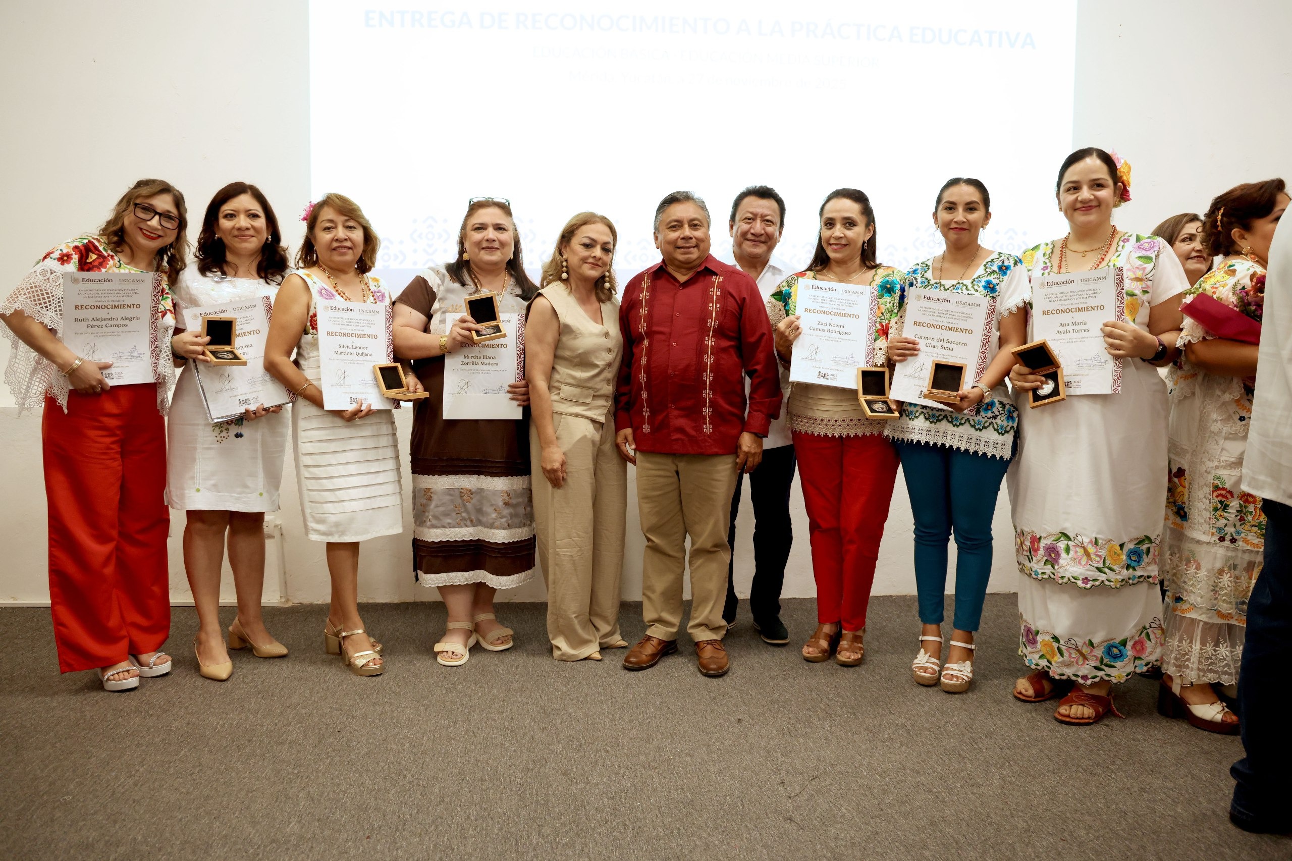 Durante el evento, el enlace estatal ante Usicamm, Ricardo Homá Mendiburu, resaltó que la distinción reconoce estrategias creativas que transmiten valores fundamentales y fortalecen la educación pública de excelencia en el estado.