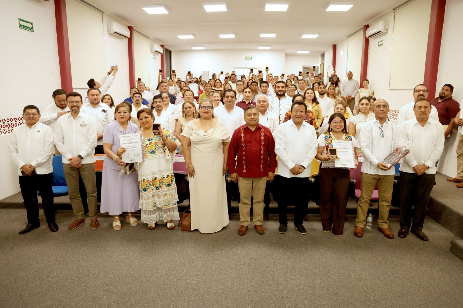 Las autoridades educativas estatales y representantes sindicales acompañaron a las y los docentes en esta ceremonia que reafirma el compromiso con una educación de calidad en Yucatán.