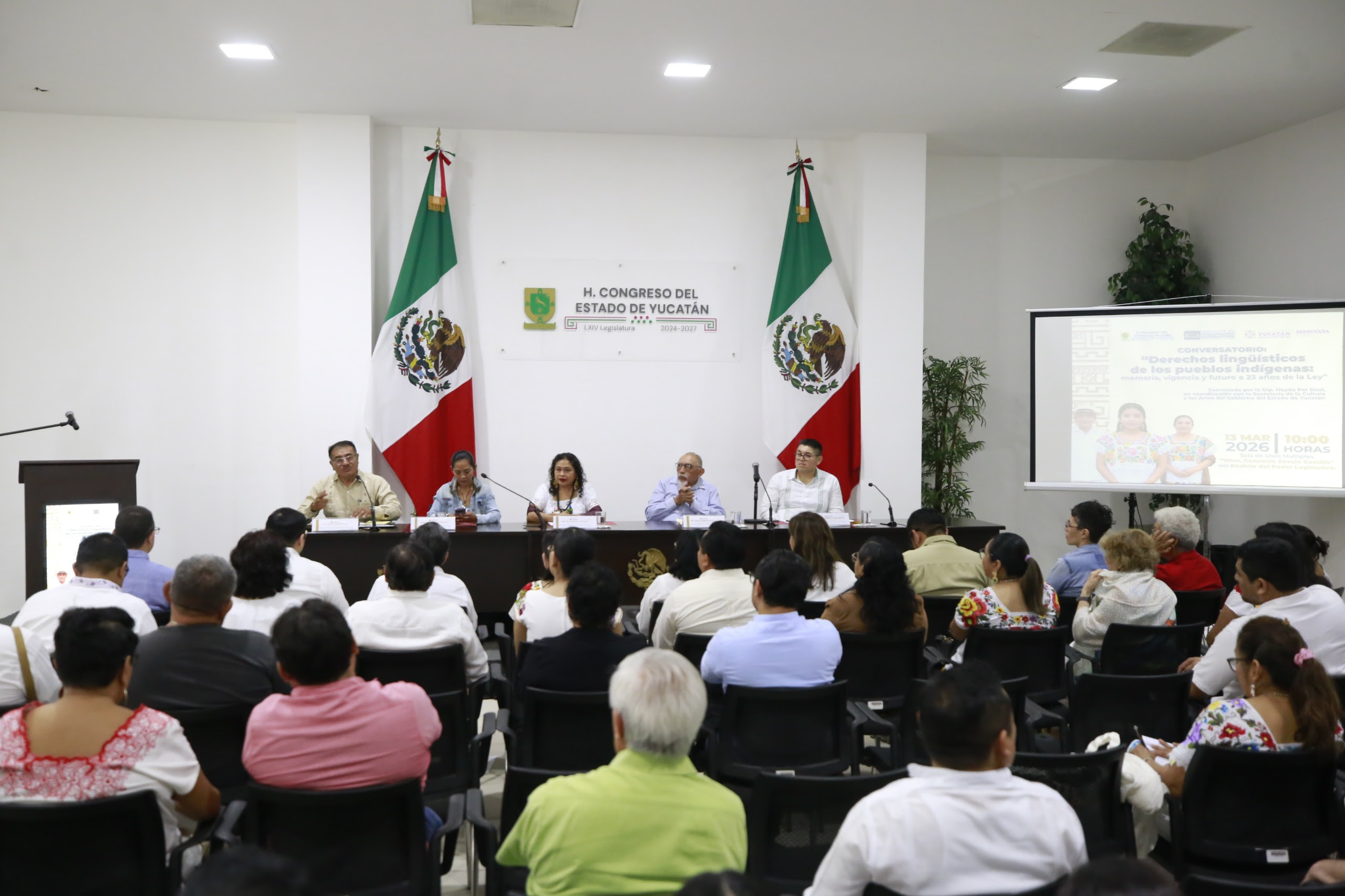 Mérida, Yucatán, 13 de marzo de 2026.– Con un llamado a fortalecer la protección y aplicación de los derechos lingüísticos de los pueblos indígenas, se llevó a cabo en el Congreso del Estado el conversatorio “Derechos lingüísticos de los pueblos indígenas: memoria, vigencia y futuro a 23 años de la Ley”, organizado por la diputada de Morena, Neyda Aracelly Pat Dzul, en coordinación con el Instituto de Investigaciones Legislativas y la Secretaría de la Cultura y las Artes del Estado de Yucatán (SEDECULTA).
