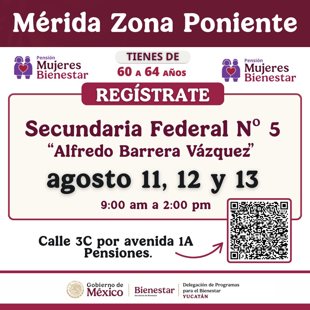 Mérida, Yucatán, 8 de agosto de 2025. — Ante la alta demanda de incorporaciones al programa Pensión Mujeres Bienestar, la Delegación Federal de Programas para el Bienestar en Yucatán anunció el cambio de sede para la zona poniente.