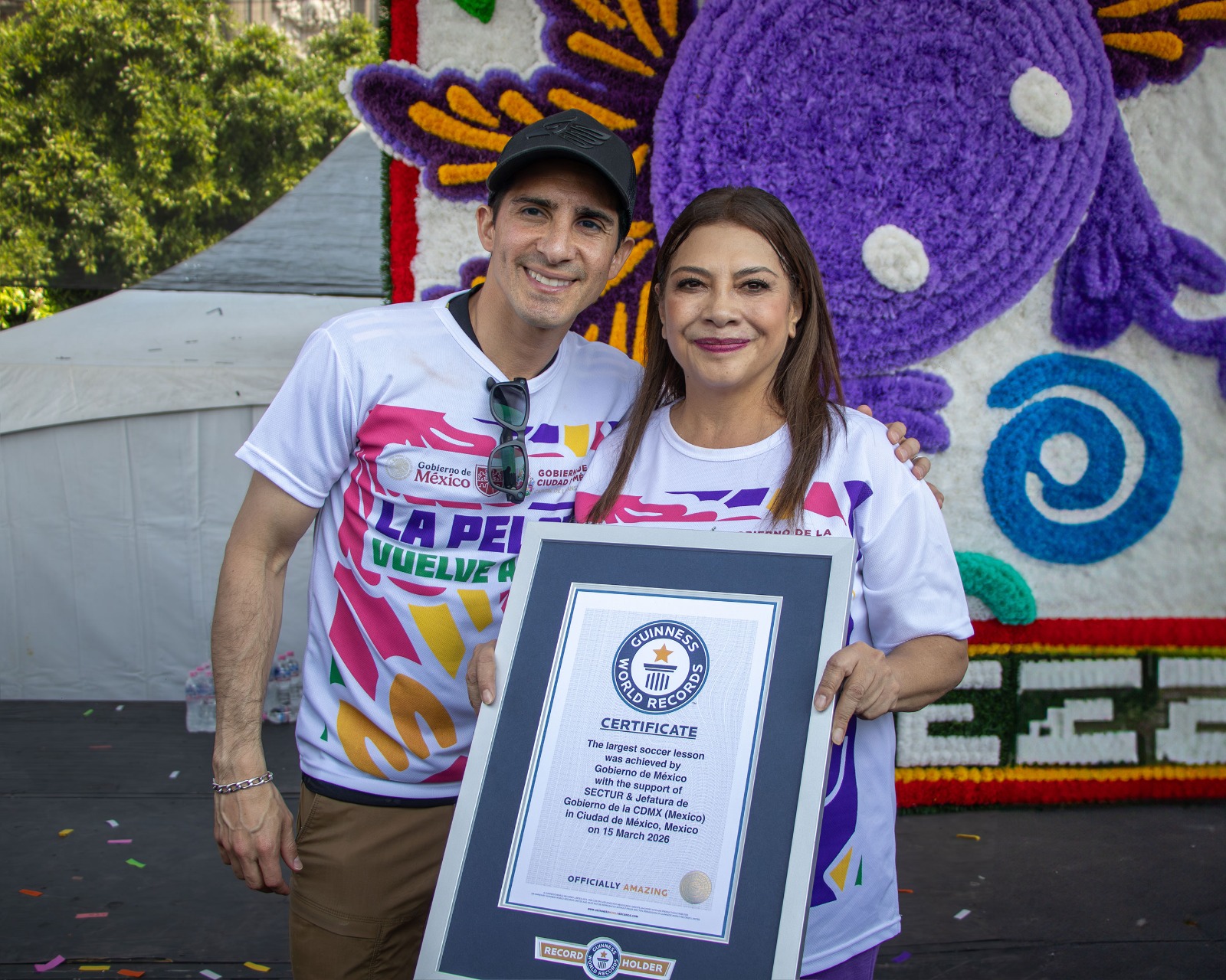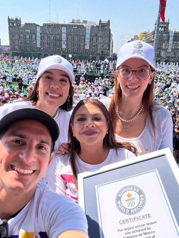 En el Zócalo de la Ciudad de México, Rommel lideró junto con Josefina Rodríguez, Secretaria de Turismo Federal; Gabriela Cuevas, representante del Gobierno de México ante la FIFA; y Clara Brugada, Jefa de Gobierno de la Ciudad de México, una clase masiva de fútbol que logró que México rompiera un Récord Guinness.