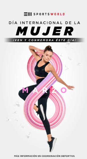 Durante el mes de marzo, en conmemoración del Día Internacional de la Mujer, Sports World estará llevando a cabo clases grupales especiales dedicadas a las mujeres, fomentando el bienestar, la conexión y la motivación entre nuestras socias. Además, en todos nuestros clubes instalaremos muros conmemorativos donde los miembros de nuestra comunidad podrán dejar mensajes de reconocimiento y agradecimiento a las mujeres que los inspiran.