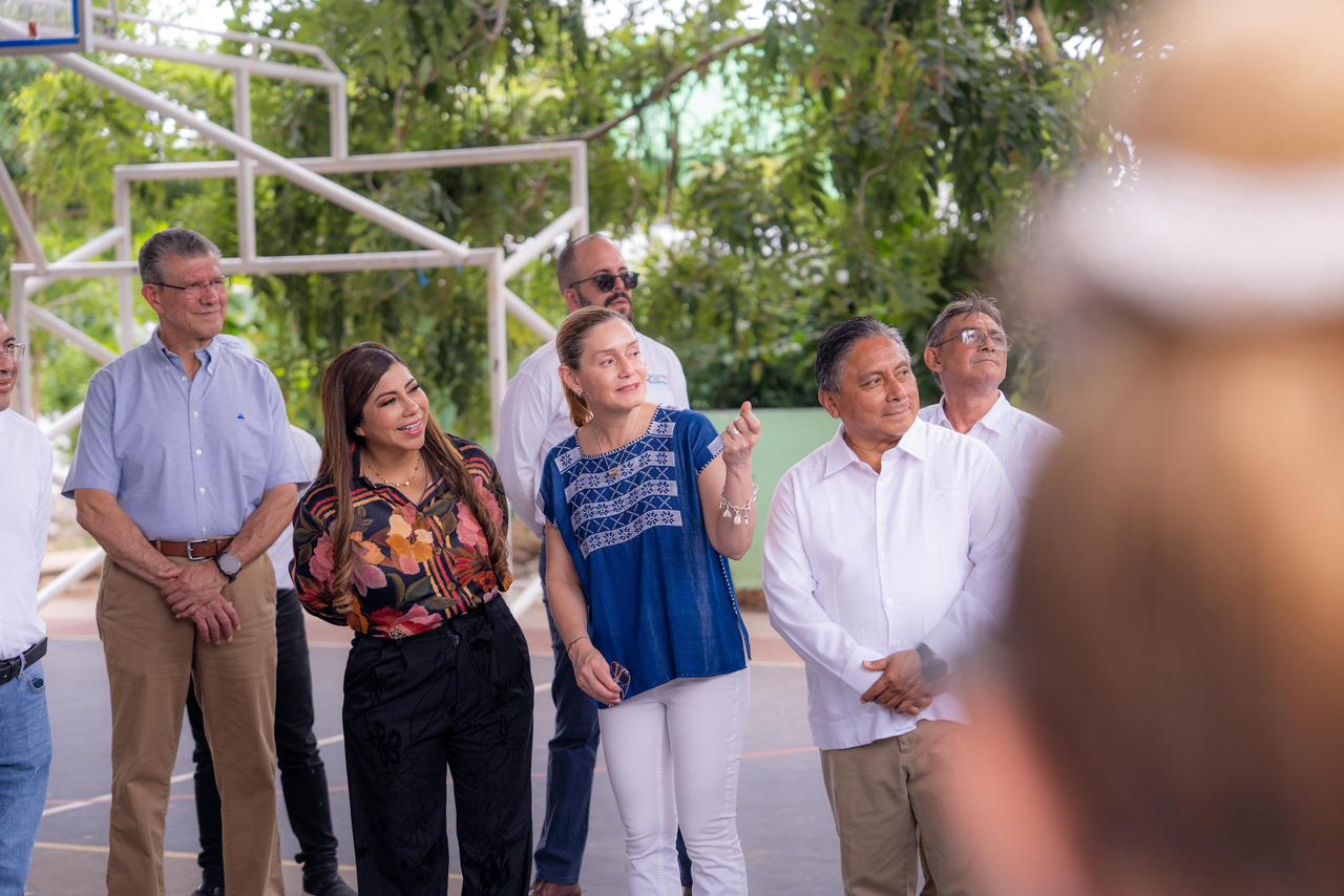 La Presidenta Honoraria del DIF Yucatán, Mtra. Wendy Yamile Méndez Naal; la Directora General de la Fundación Alberto Baillères, Rosa Isela Gluyas Fitch; y el Secretario de Educación, Juan Enrique Balam Várguez, encabezaron la gira que contempló cinco planteles donde se implementa este modelo orientado al desarrollo integral de niñas, niños y jóvenes.