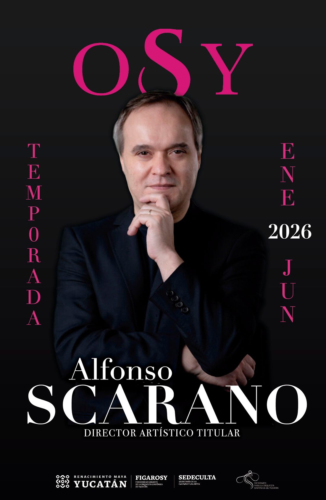 La Orquesta Sinfónica de Yucatán (OSY) anunció su Temporada 45 de conciertos correspondiente al periodo enero-junio de 2026, con una programación de la más alta calidad que reúne lo mejor de Yucatán, México y el mundo, y que marca el debut del maestro Alfonso Scarano como nuevo Director Titular Artístico de la agrupación.