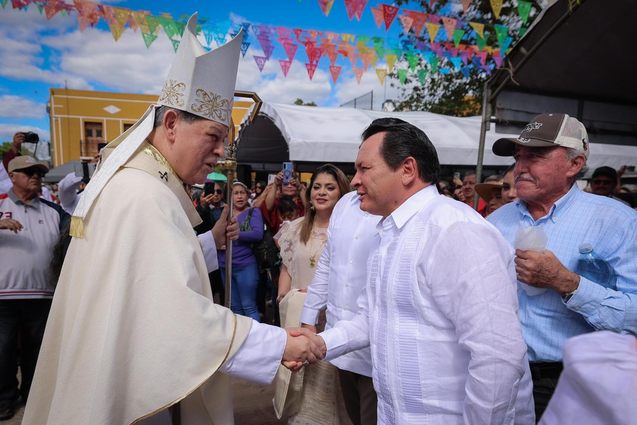 Acompañado por la Presidenta Honoraria del DIF Yucatán, Mtra. Wendy Méndez Naal, el Gobernador presenció la homilía oficiada por el Arzobispo de Yucatán, Gustavo Rodríguez Vega, quien destacó el valor de la fe, la unidad y la preservación de las tradiciones en tiempos de transformación social.