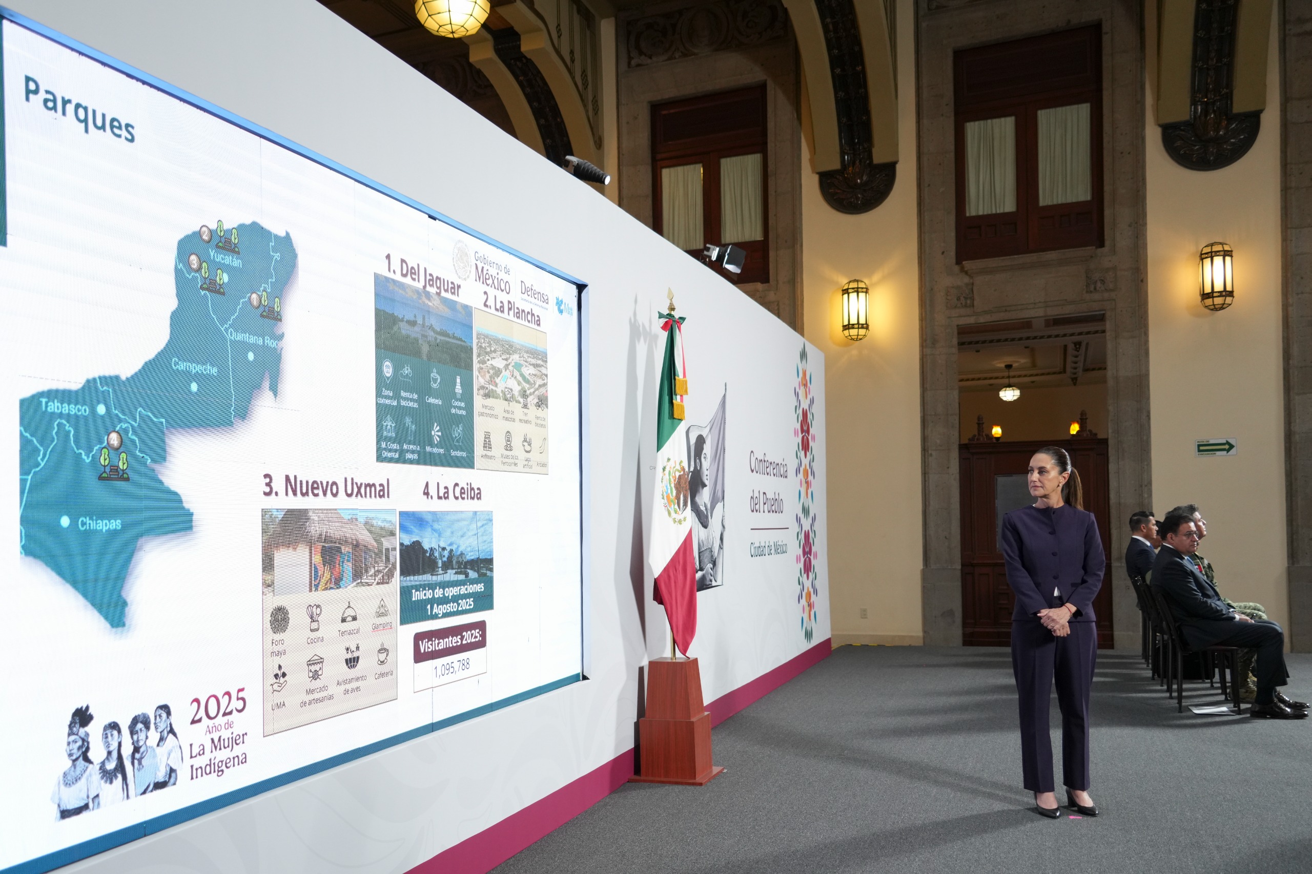 Sobre la infraestructura turística, Sheinbaum resaltó que los Hoteles Mundo Maya, administrados por la Sedena, ya generan casi mil empleos y cuentan con paquetes vacacionales accesibles. Además, los parques turísticos han recibido a más de 8.6 millones de visitantes.