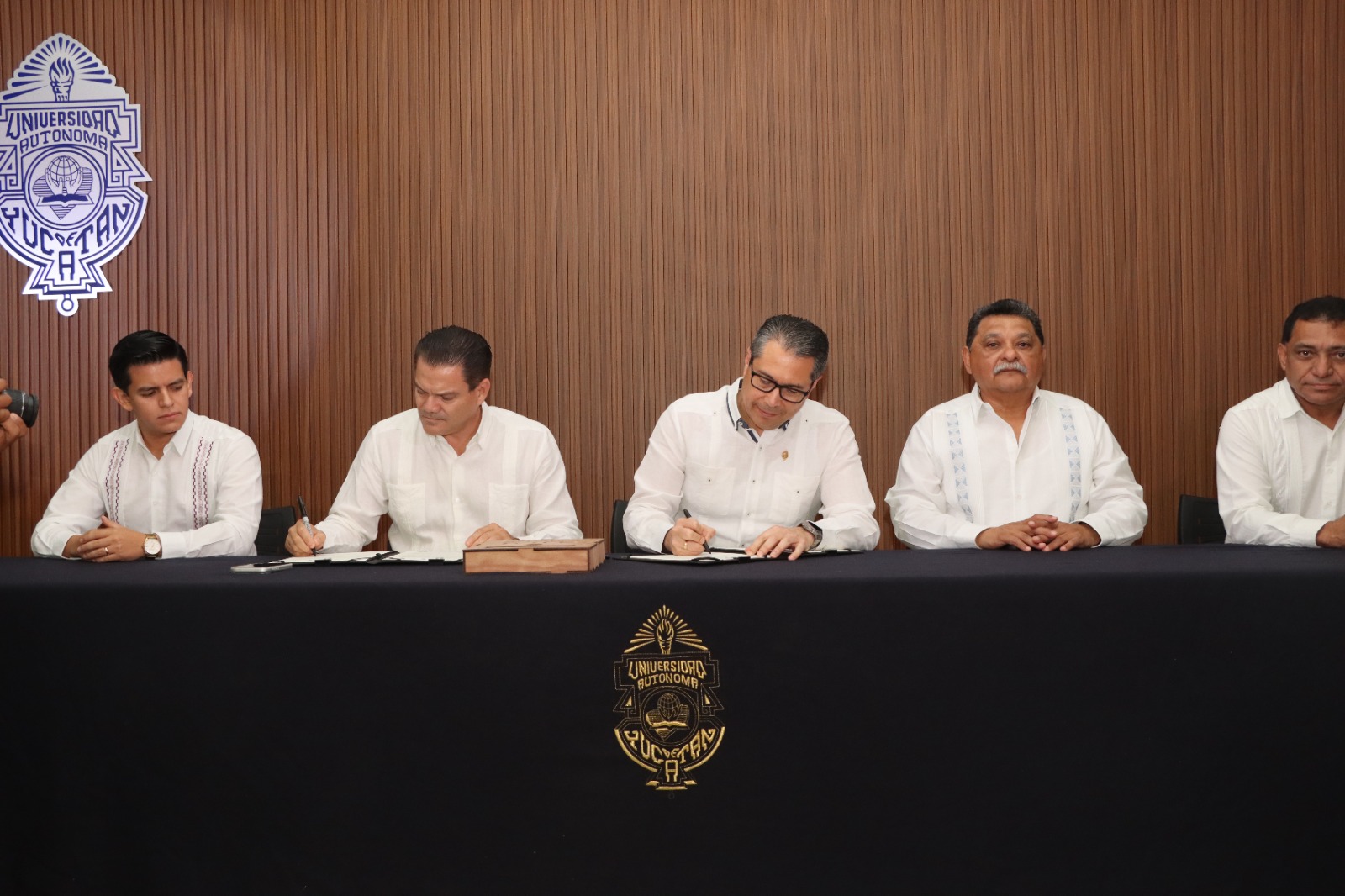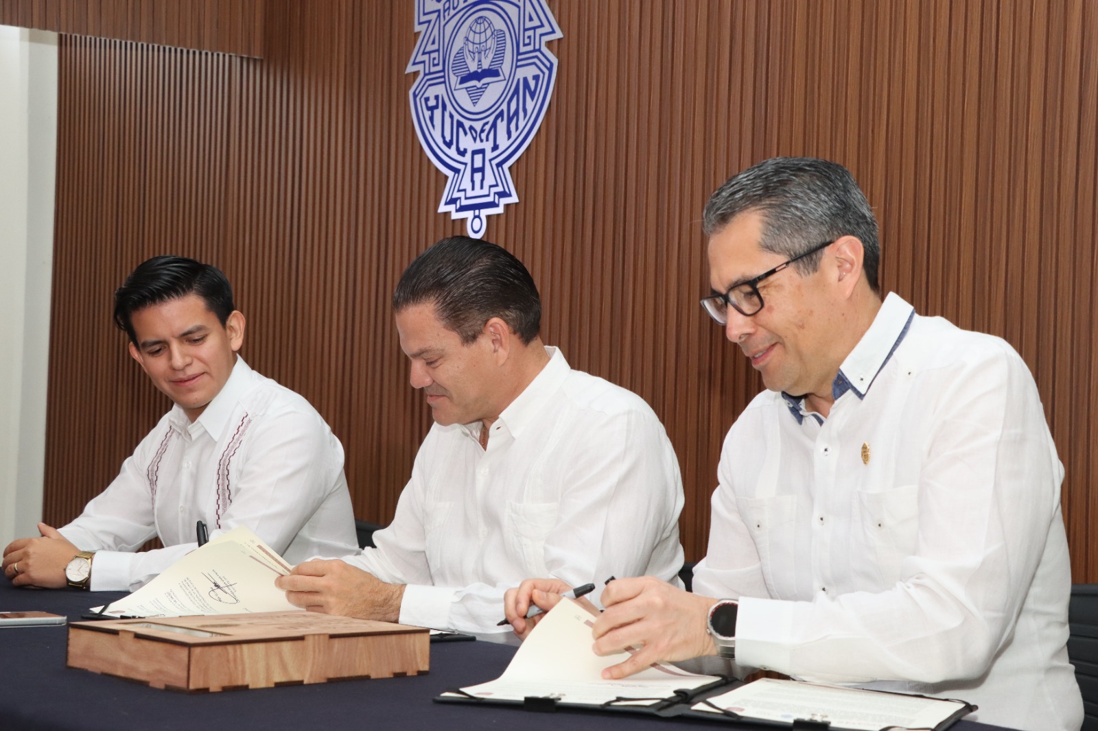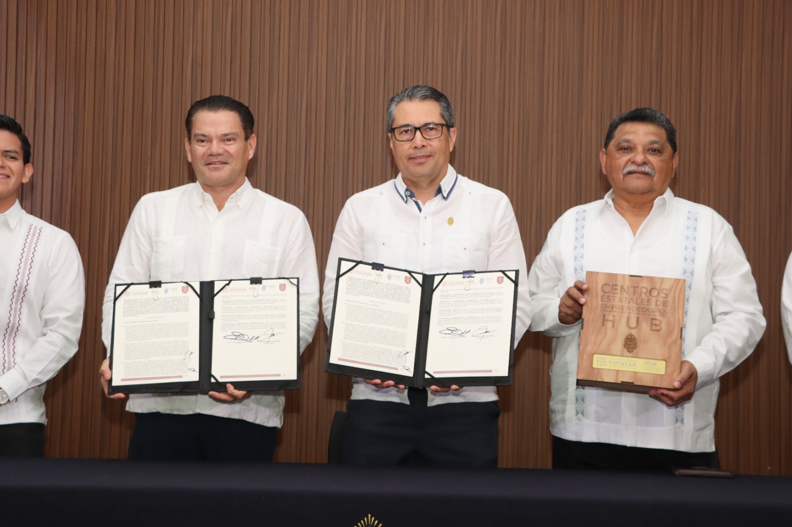 Mérida, Yucatán, 13 de marzo de 2026.– Con el objetivo de fortalecer la cultura emprendedora y brindar herramientas para el desarrollo de proyectos innovadores dentro de la comunidad universitaria, la Universidad Autónoma de Yucatán (UADY) y el Instituto Yucateco de Emprendedores (IYEM) firmaron un convenio de colaboración para la creación de hubs de emprendimiento en distintas escuelas, facultades y campus de la institución.