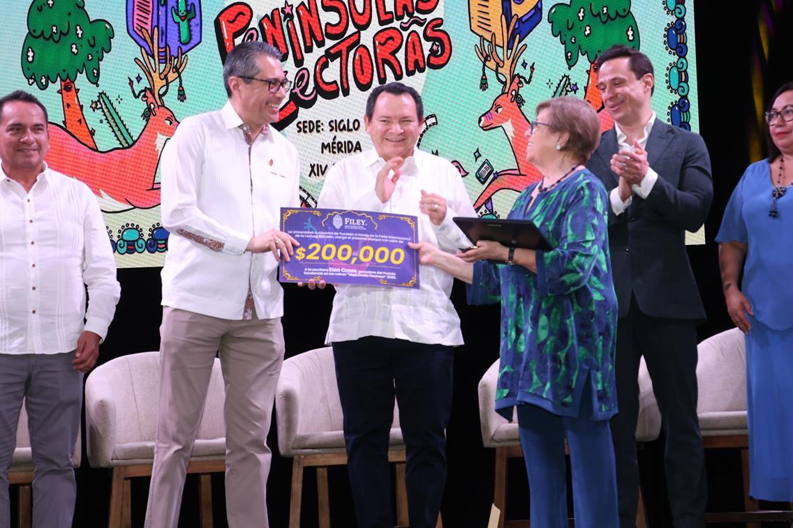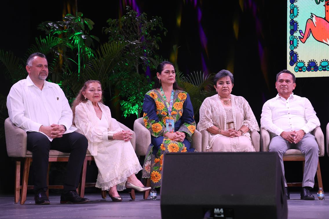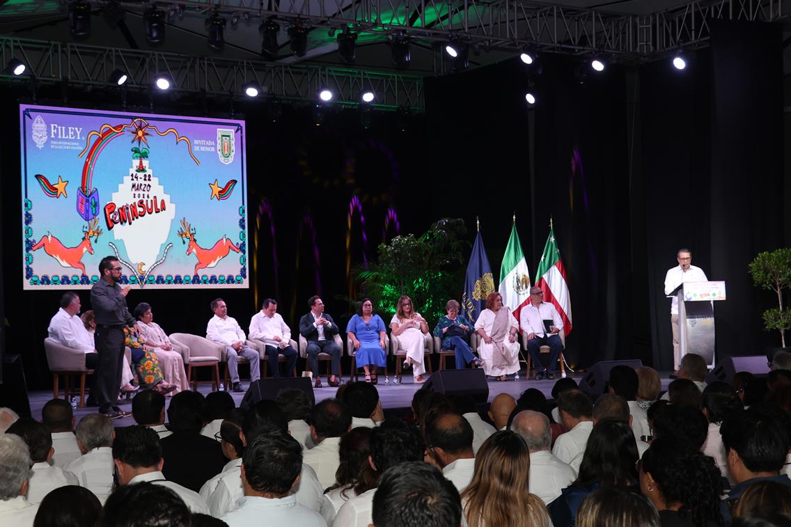 También resaltó que la literatura en lengua maya ocupa un lugar especial dentro de la feria, reconociendo el trabajo de los escritores que mantienen viva la lengua originaria y enriquecen el patrimonio cultural de Yucatán y de México.