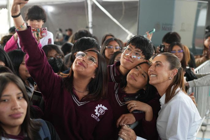 “Ya cumplimos las tres aquí: estamos construyendo más preparatorias que queden cerca de la casa; ya desaparecimos el examen del Comipems; vamos a hacer universidades también. Queremos que los jóvenes tengan educación, educación, educación; a los padres y madres de familia, lo que más podemos darle a nuestros hijos, además de amor, es educación y por eso estamos fortaleciendo la educación pública”, informó.